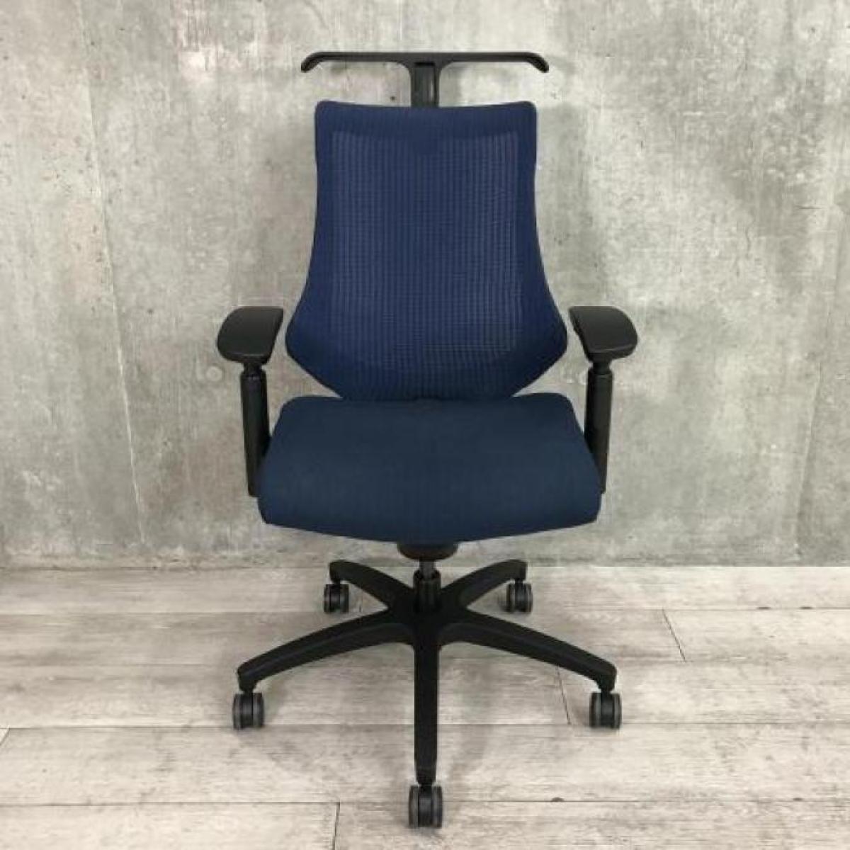 【最先端のデザインに快適な座り心地!】■イトーキ製 エフチェア 可動肘付 ネイビーブルー ■三次元フォルムが腰にフィット!【在庫入替セール品(本在庫限定価格)】