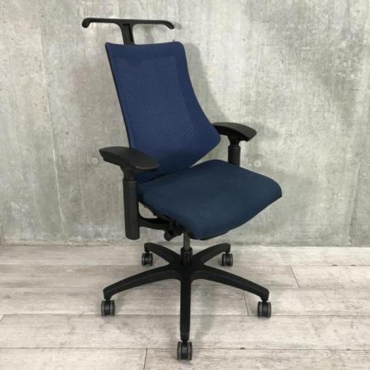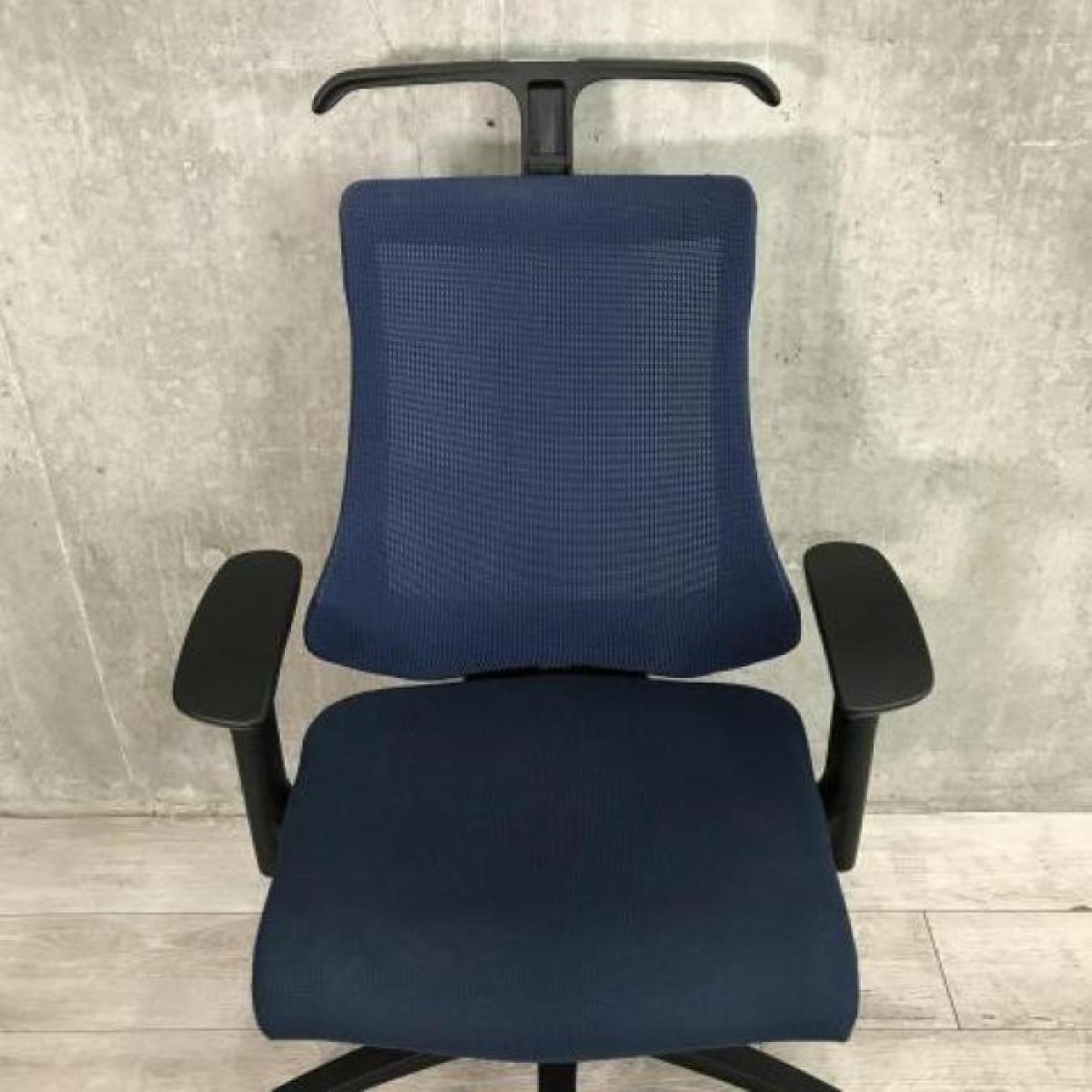 【姿勢の変化にフレキシブルに対応!スタイリッシュで座り心地も抜群な高機能チェア!】■イトーキ(ITOKI)製 エフ(f)チェア 肘付き ハイバック 背面メッシュ ■可動肘 ■ネイビーブルー ×ブラックシェル【2510】弊社使用欄【A01040263】