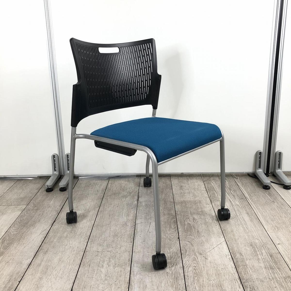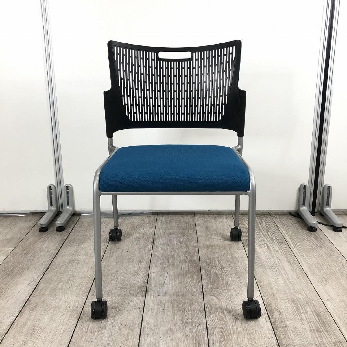 【シンプルなデザインで使いやすい!重ねて収納可能なスタッキングチェア!会議室、共有スペースなどに!】■オカムラ(okamura)製 レーテ(RETE) スタッキングチェア ■背:ブラック樹脂タイプ 座面:ブルー ■キャスター付き 【弊社使用欄:A01015776】【KN】在庫がある店舗一覧