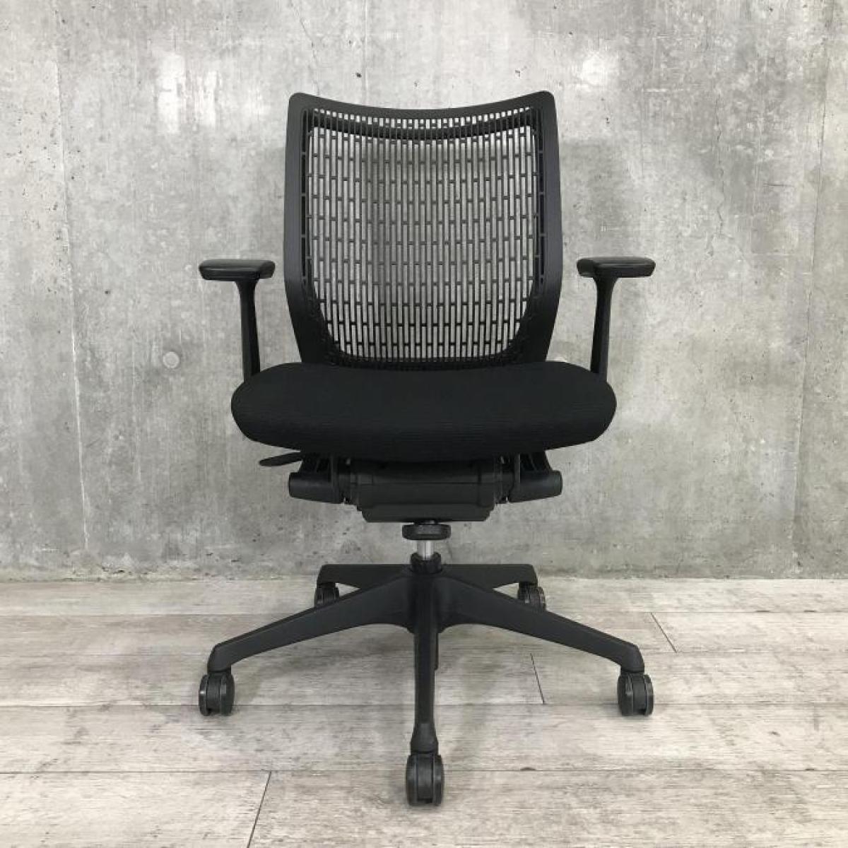 背もたれプレーンの人気モデルのスタイリッシュなチェアが入荷! 固定肘付き オカムラ/ヴィスコンテ/ブラック【弊社使用欄:A01009470】【ID】サーキュラーバリューCO2削減量の算出について