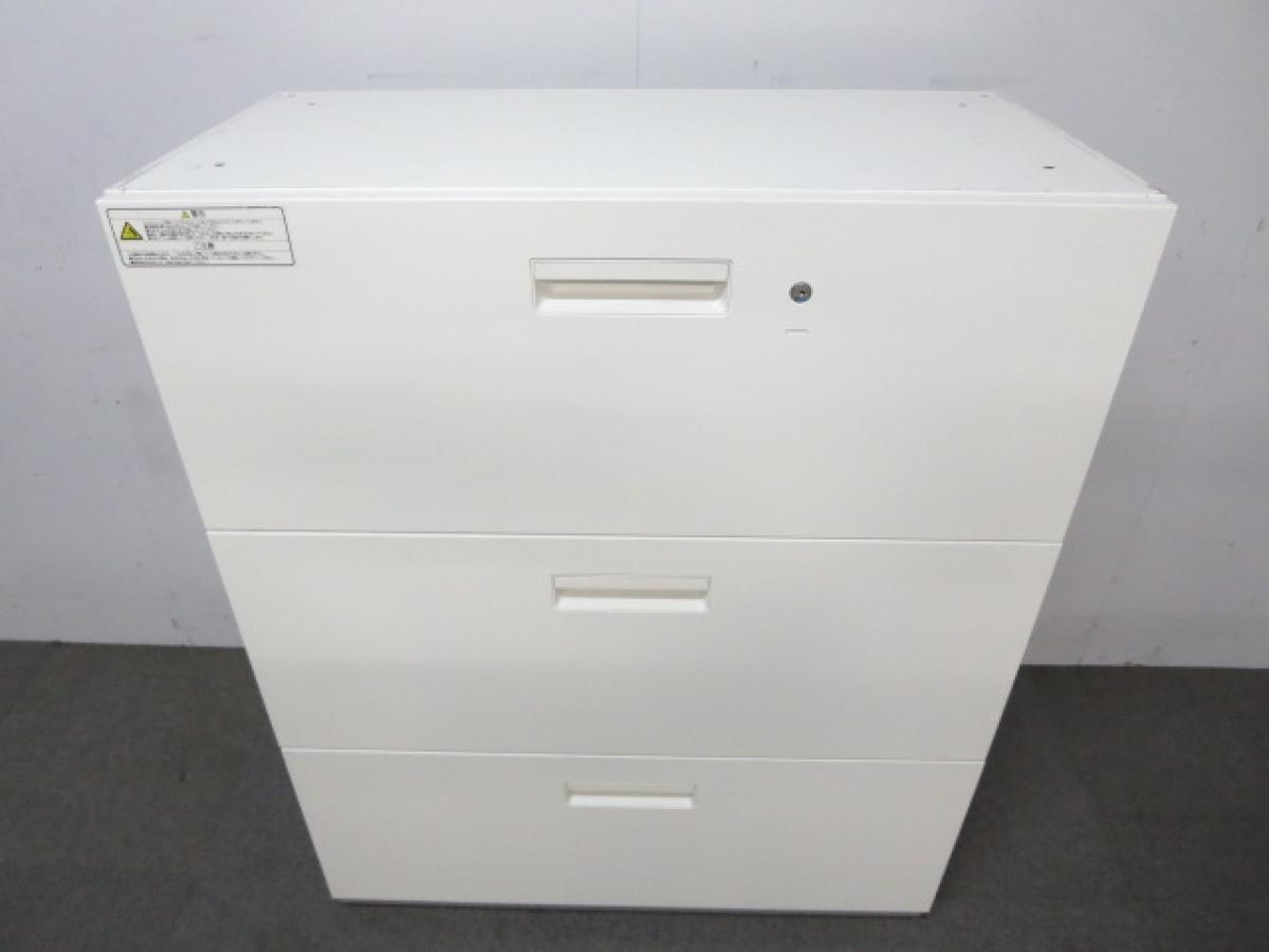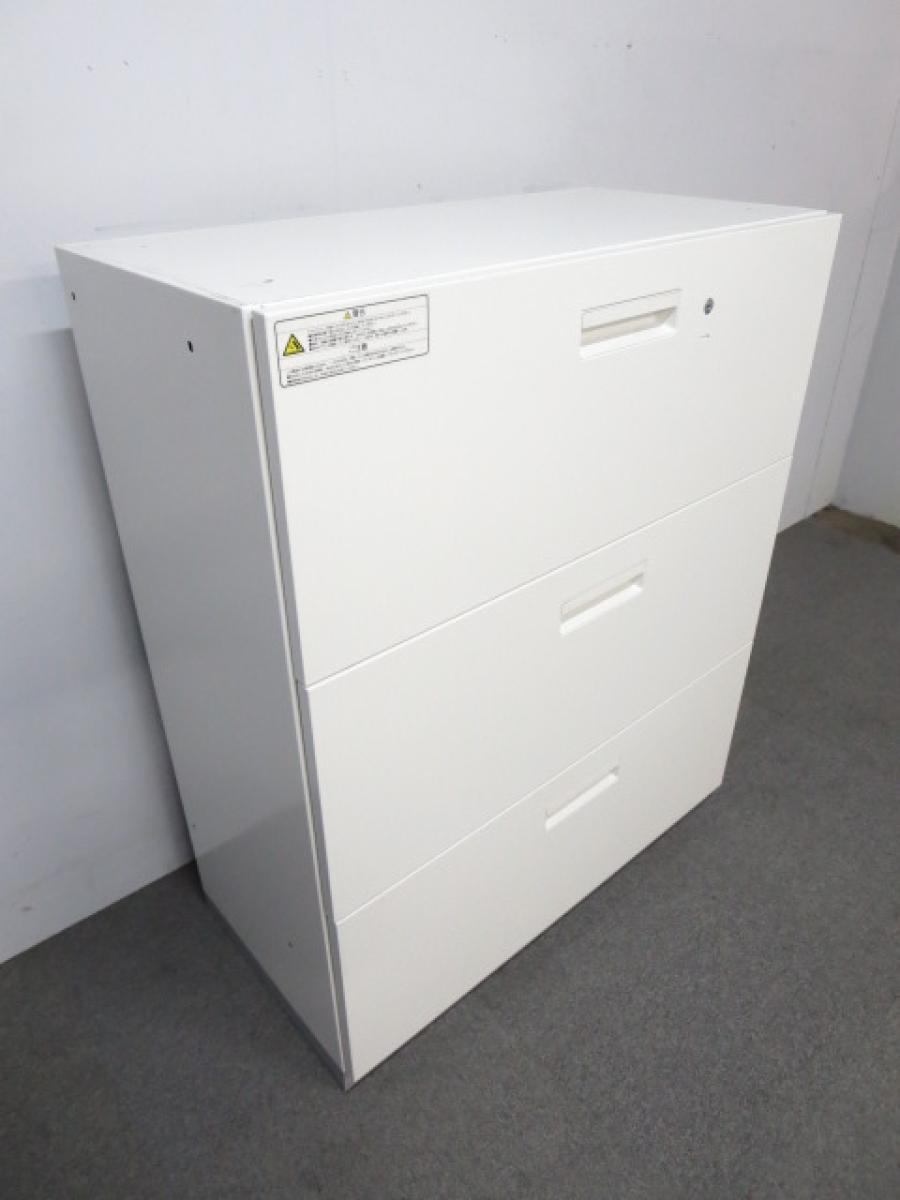 【汎用性抜群の大容量書庫!抜群の収納力で書類をスッキリ整理!】■プラス(PLUS)製 L6シリーズ 3段ラテラル ローキャビネット W900×D450㎜ ■ホワイト ■シリンダー錠