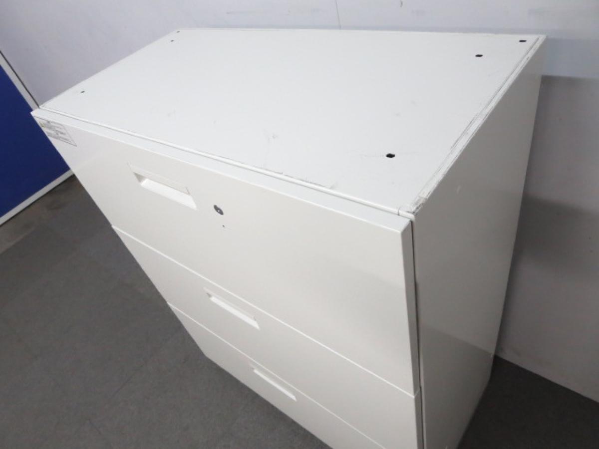 【汎用性抜群の大容量書庫!抜群の収納力で書類をスッキリ整理!】■プラス(PLUS)製 L6シリーズ 3段ラテラル ローキャビネット W900×D450㎜ ■ホワイト ■シリンダー錠