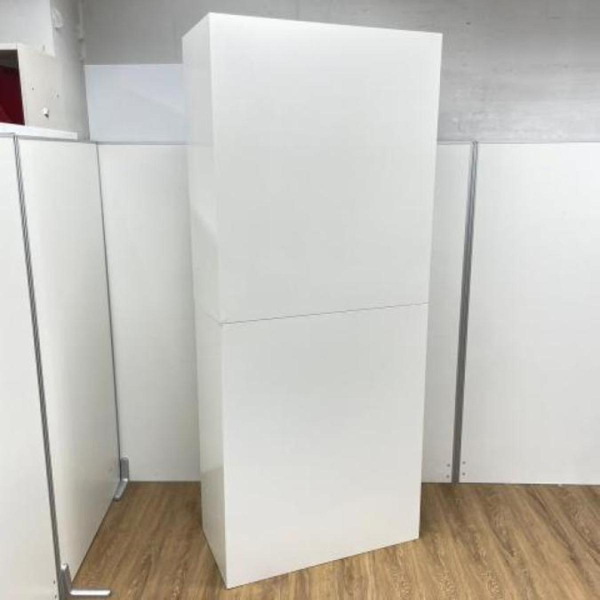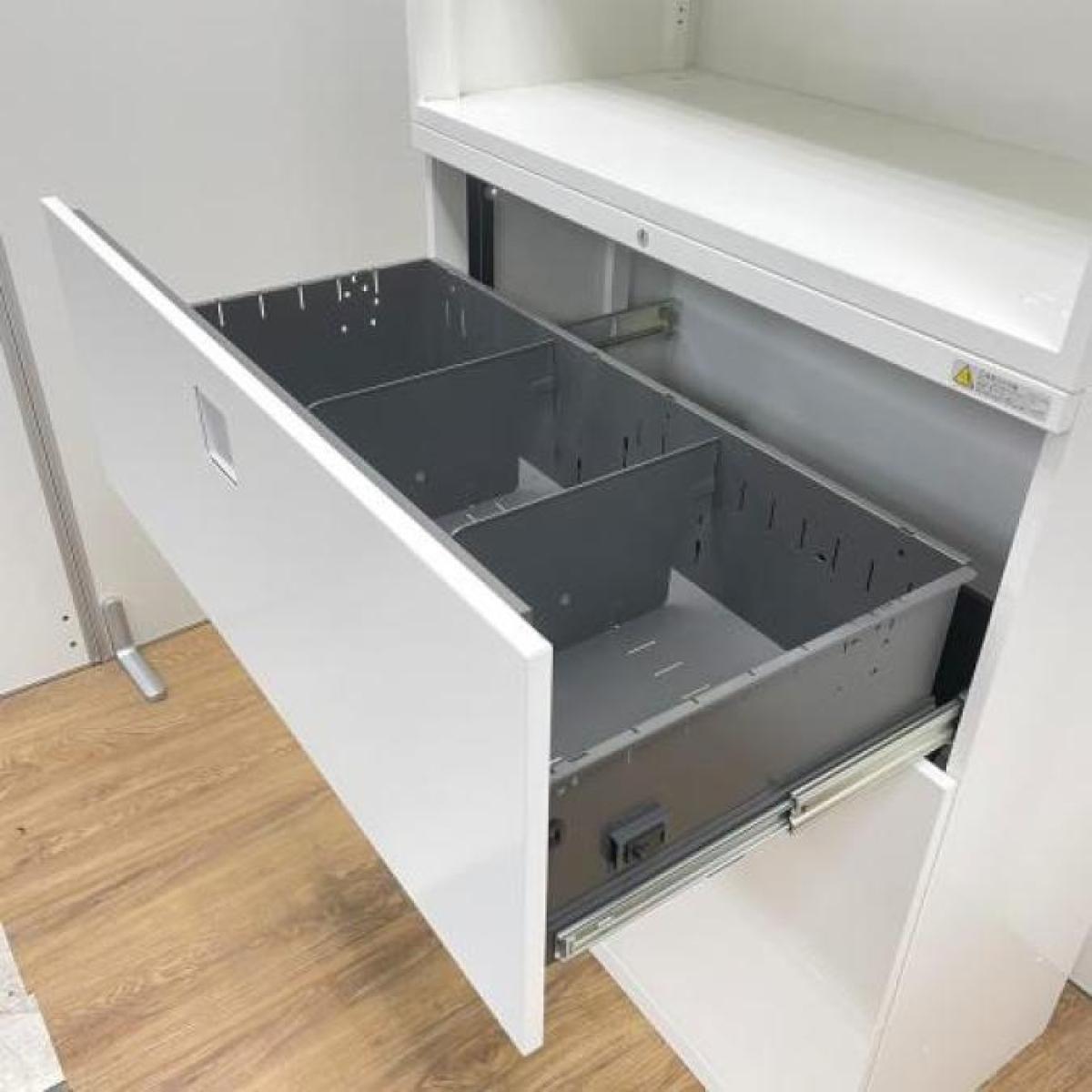 スライド式の扉+引き出しタイプの便利な書庫セットが入荷!使い勝手抜群のハイキャビネットが入荷! ■オカムラ/レクトライン/ホワイト 2枚引き戸+3段ラテラルキャビネット