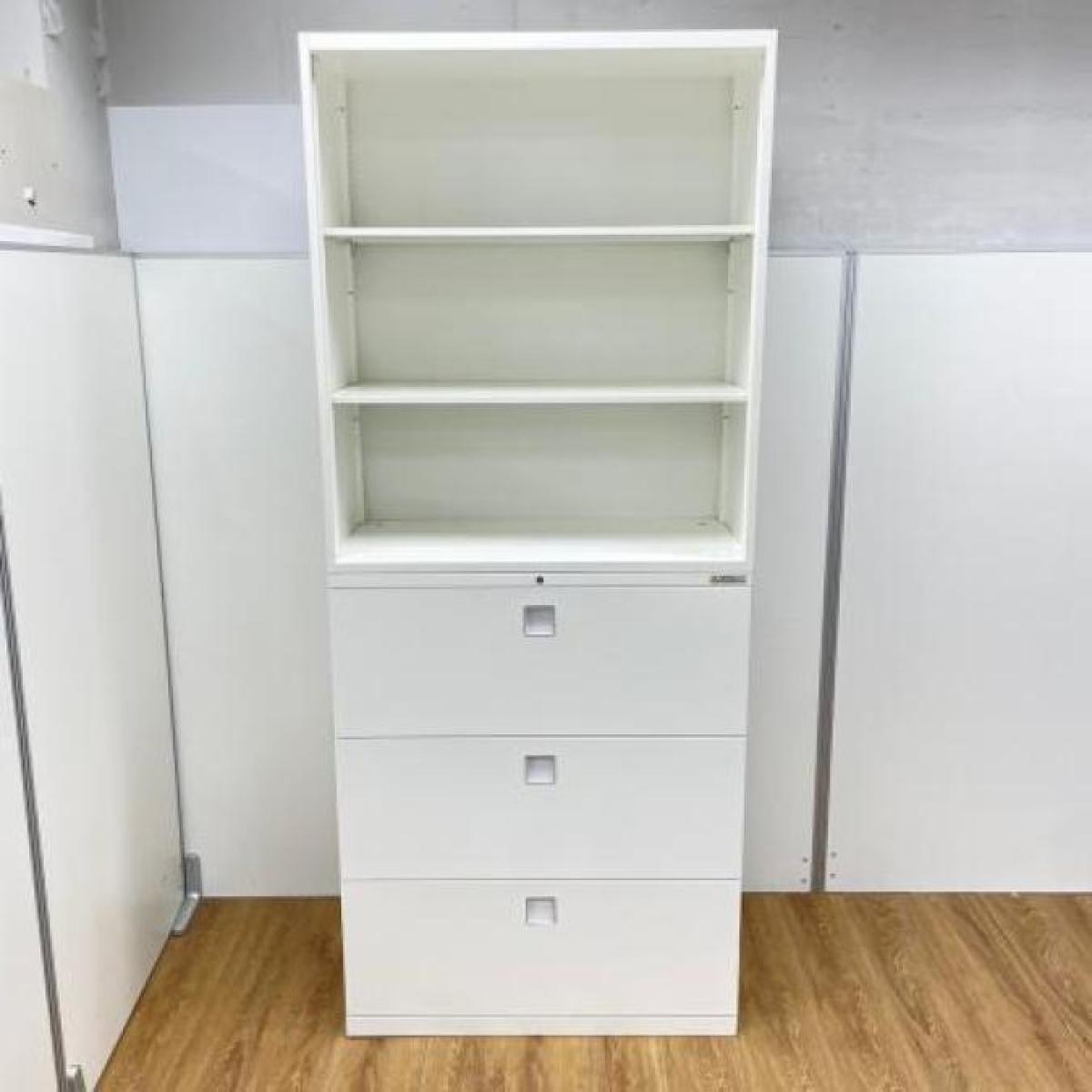 【在庫入替セール品!】使い勝手抜群の上下書庫セット!上段オープン+下段3段ラテラル仕様!※オープン書庫に扉外した跡あり ■オカムラ/レクトライン/ホワイト- 立川・八王子店