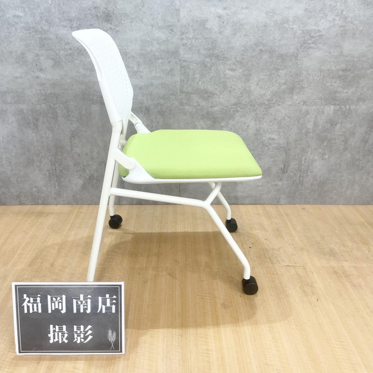 【T11】【T10】【商品入替のため、残り6脚限り】オカムラ製 ルナシリーズ ライムグリーン ホワイトフレーム 軽快なデザインが人気 ネスティングチェア!!