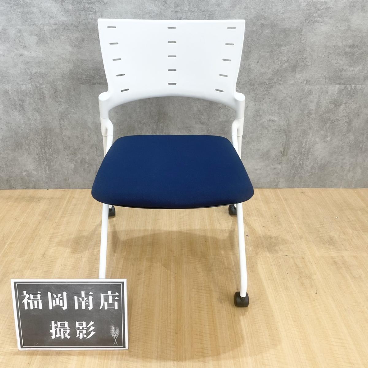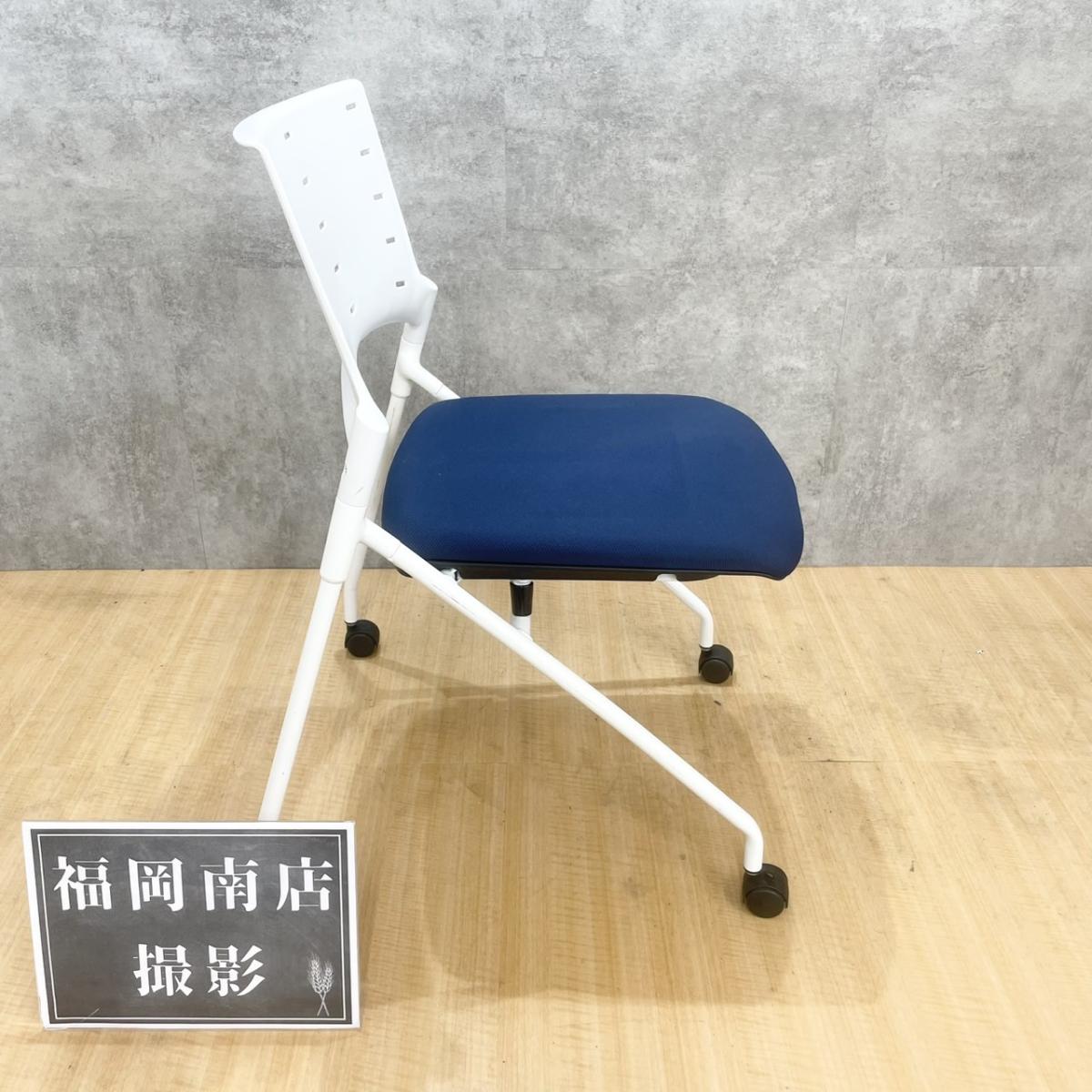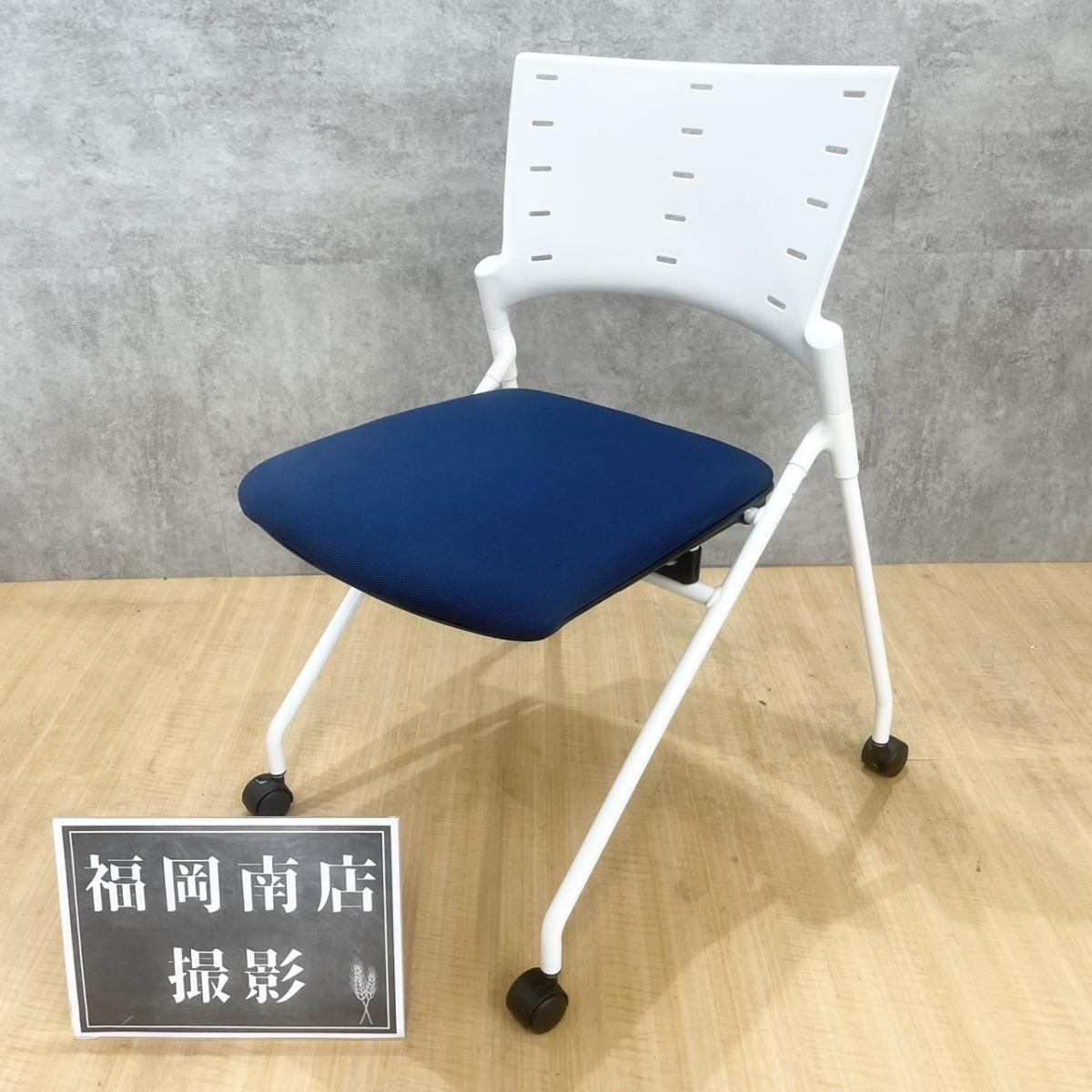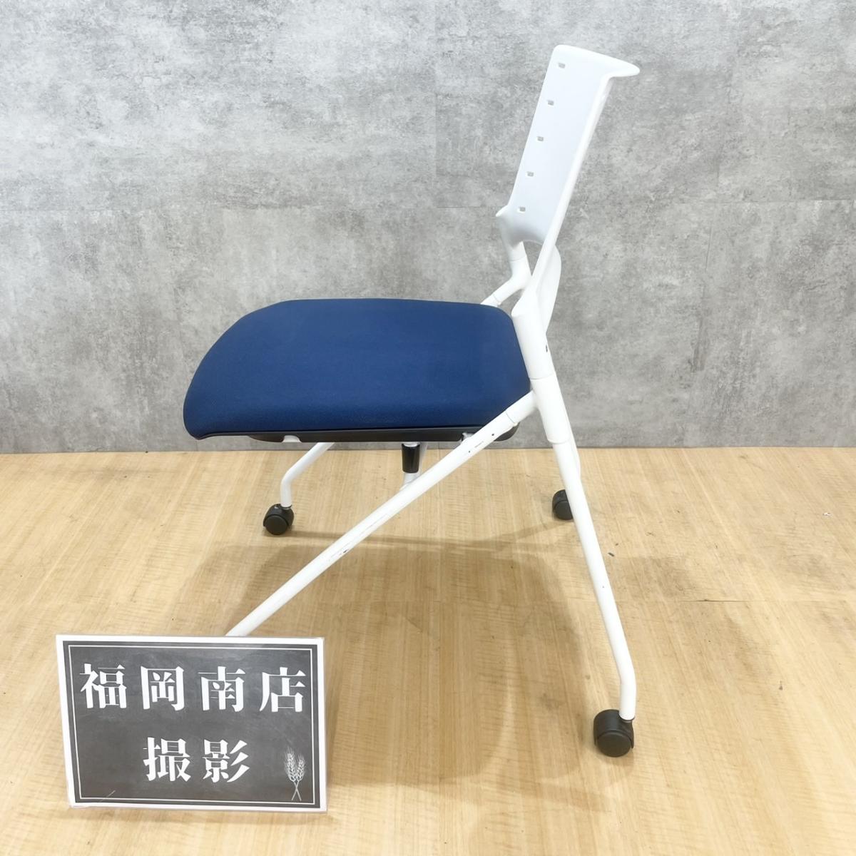 【関東倉庫在庫品】【フレキシブルに使える!平行ネスティングで省スペース化!】■イトーキ(ITOKI)製 マノス(MANOSS) ネスティングチェア ミーティングチェア ■背パッド付 ■キャスター付 ■ブルー【弊社使用欄:A01014525】【ECBMC】