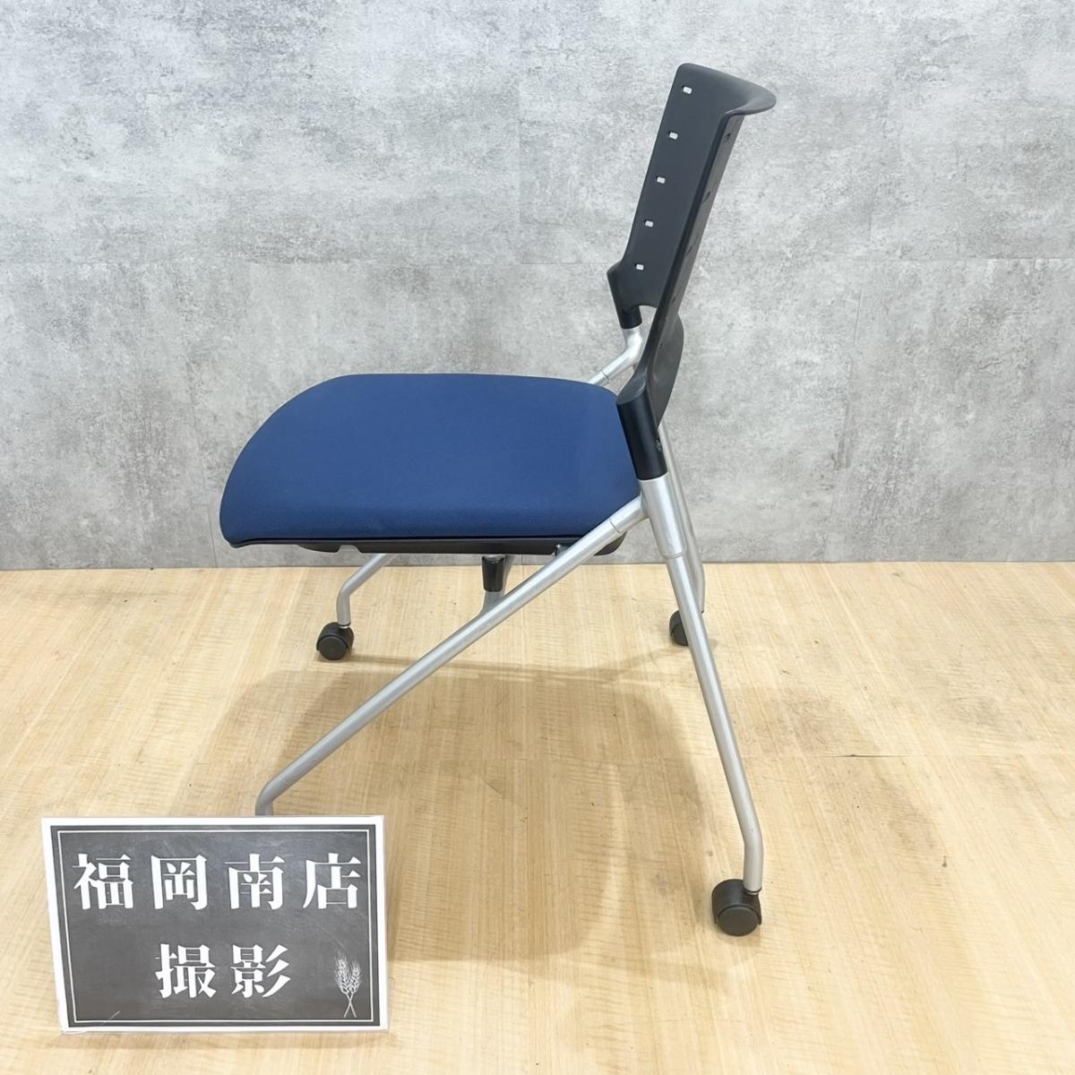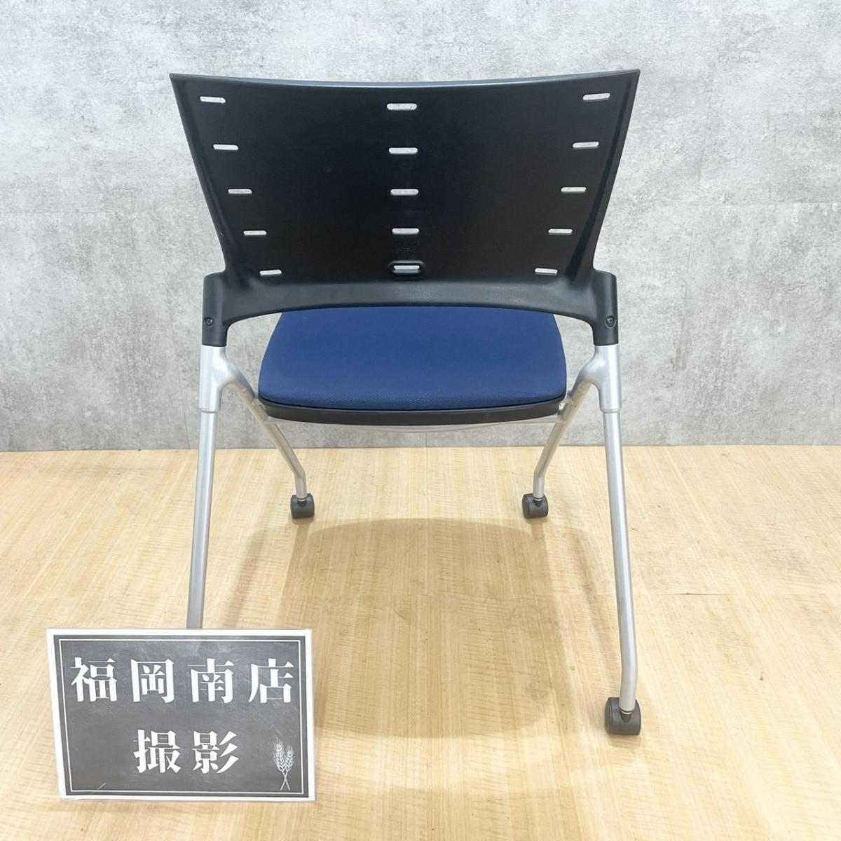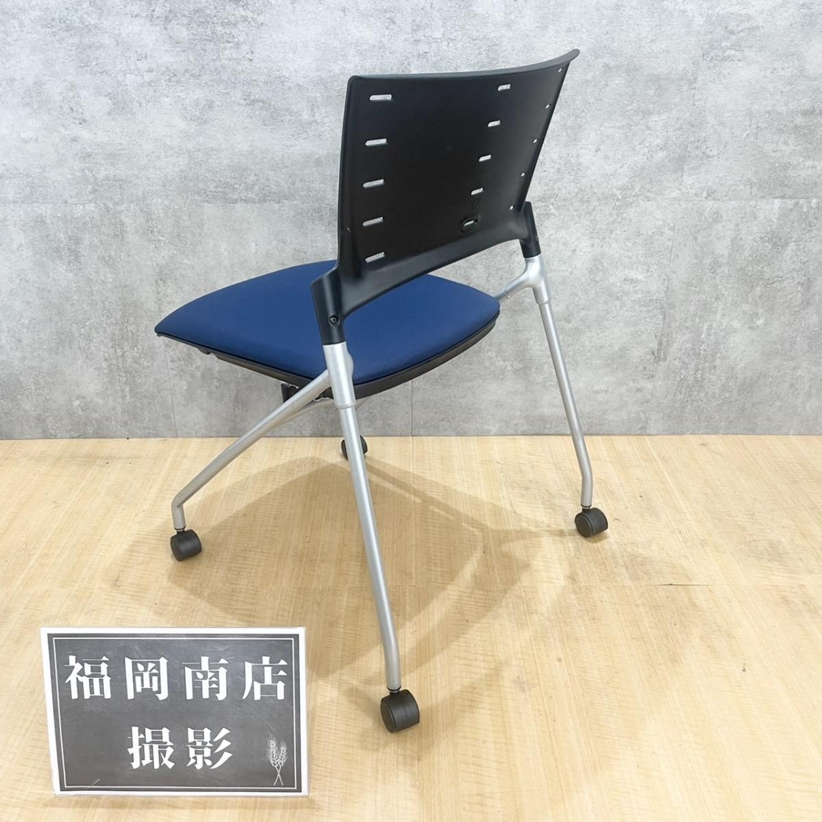 【キャスター付でスイスイ動かせる!省スペースで収納可能!会議や研修にオススメ!】■イトーキ製 マノス(MANOSS) ネスティングチェア 背面パッド無し ■ストロングブルー ■オフィスバスターズ東大阪店 【W】
