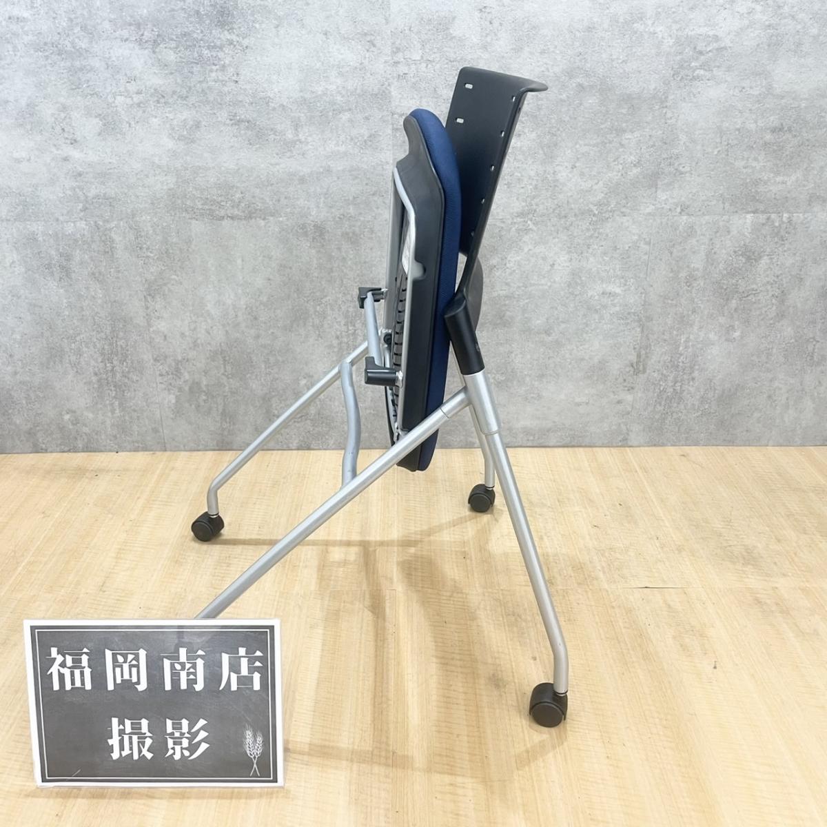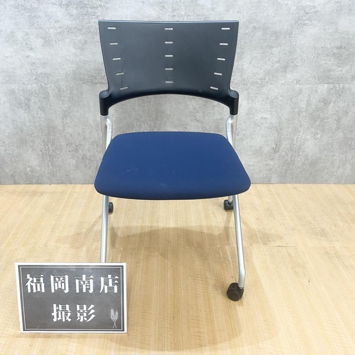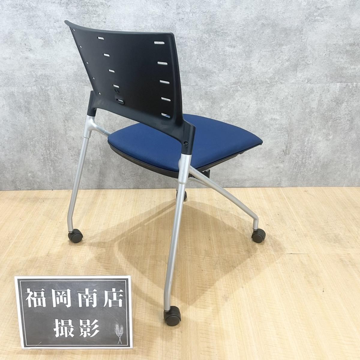【キャスター付でスイスイ動かせる!省スペースで収納可能!会議や研修にオススメ!】■イトーキ製 マノス(MANOSS) ネスティングチェア 背面パッド無し ■ストロングブルー ■オフィスバスターズ東大阪店 【W】