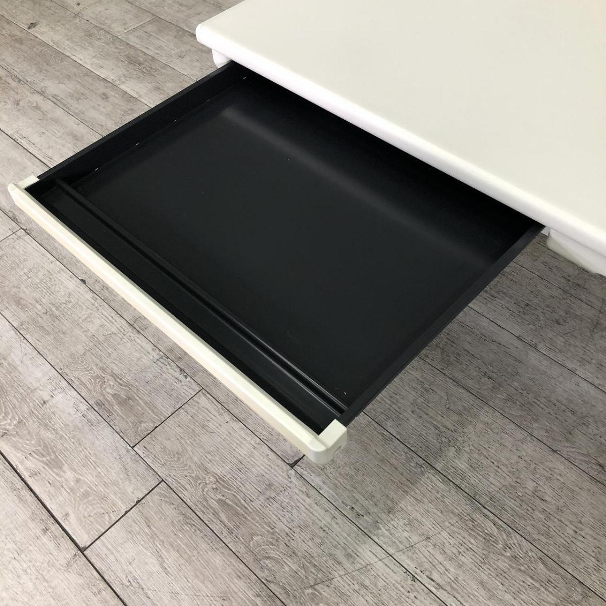 【定価約5万円】【今や希少品?!W1000mmのちょうどよいコンパクトサイズ!】■プラス(PLUS)製 LAシリーズ 平机 引き出し付 W1000㎜ ■ホワイト ■配線口 ※日焼けあり