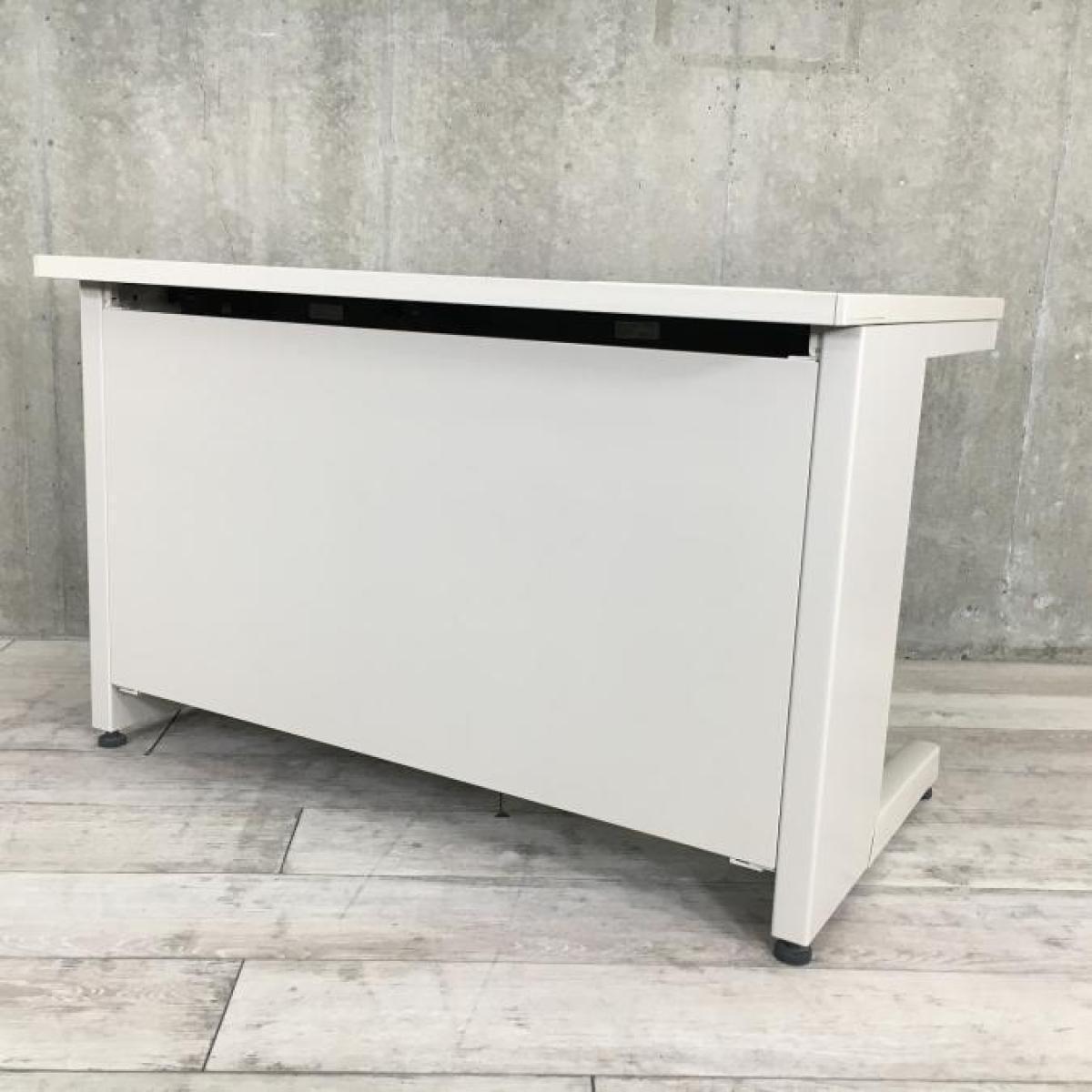 明るいアイボリーよりのニューグレー色で非常に人気のデスクになります。