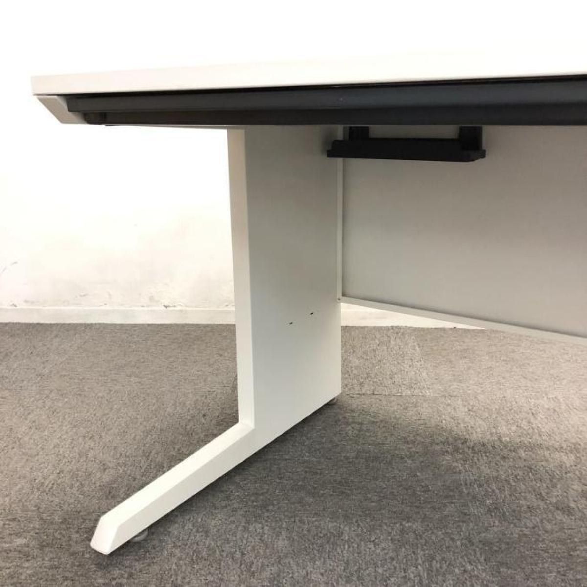- シャープであらゆるオフィスに調和するシンプルなデザイン。天板は、ホワイト色と木目2色から選べます。