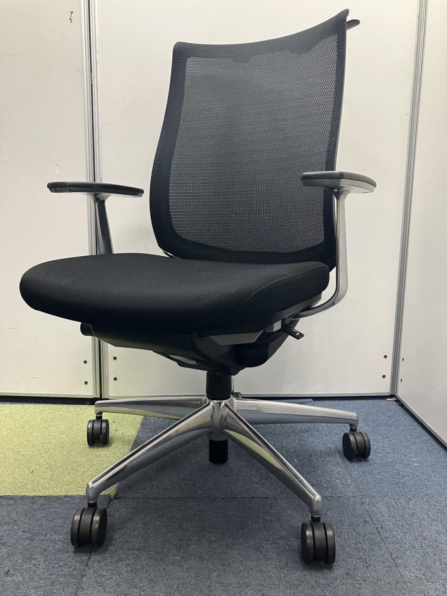 前傾機能付き高級チェア!重厚感のあるブラック×ポリッシュ仕様 応接室や会議用にもおすすめ! ■コクヨ/ベゼル/ブラック テクスチャードメッシュ