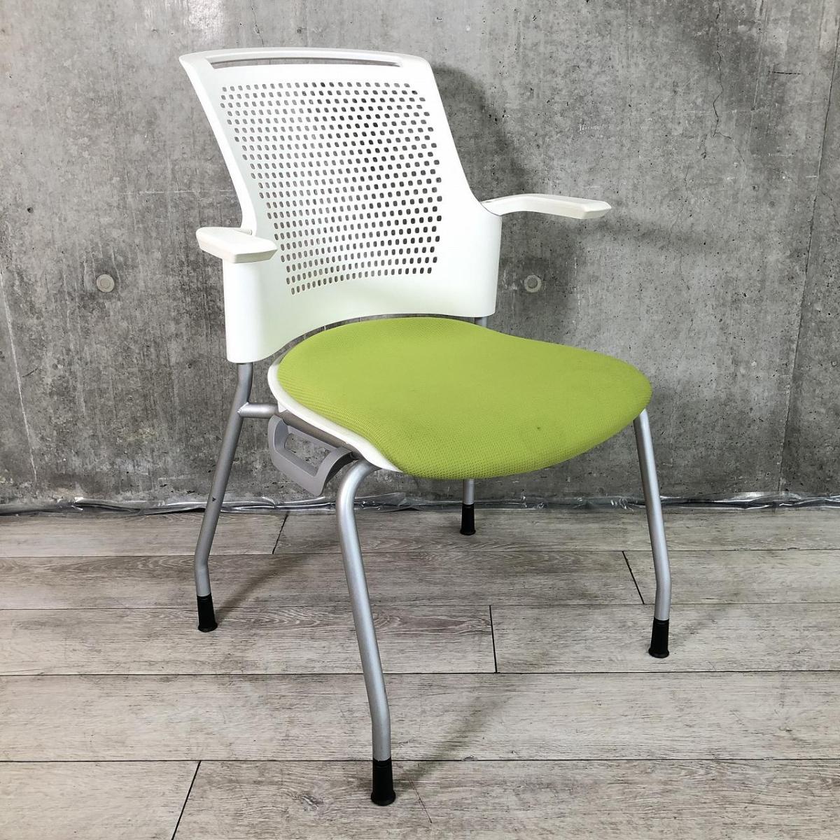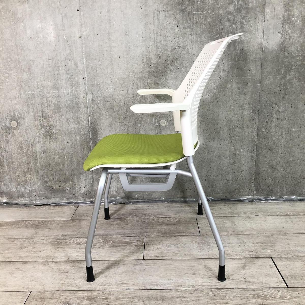 【4脚限定】背のカーブ形状が腰部をしっかりとサポート!軽やかなミーティング空間を演出! ■プラス/チェダーC/リーフグリーン