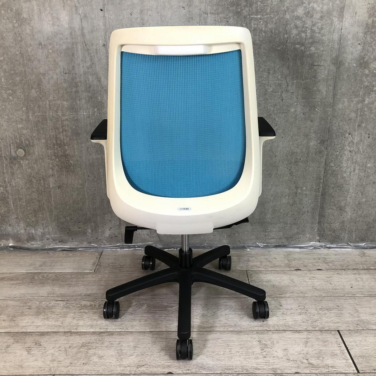 【在庫セール品・1脚限定】【T11】■イトーキ(ITOKI)製 ノナ(nona)チェア 肘付ハイバックチェア ■背面メッシュ ■可動肘 ■ブルーグリーン ×ホワイトシェル【理想的な作業姿勢をキープ!コンパクトで使い勝手抜群!】