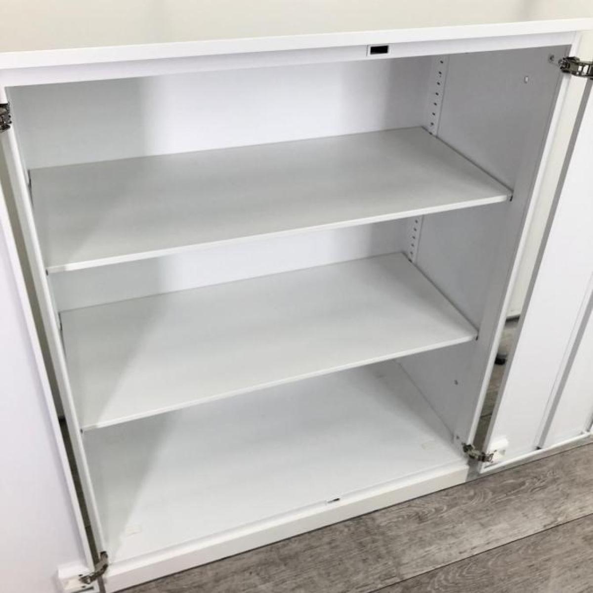 コクヨ製 エディアシリーズ ホワイト シリンダー 施錠 収納物がひとめで分かる両開き戸タイプ! ローキャビネット 両開き書庫!!外部倉庫在庫