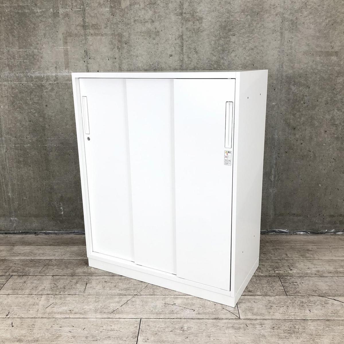 3枚引き戸書庫 コクヨ エディア 鍵付き(シリンダー錠) 天板付き 清潔感のあるホワイトキャビネット 導線を邪魔しないスライド式の扉