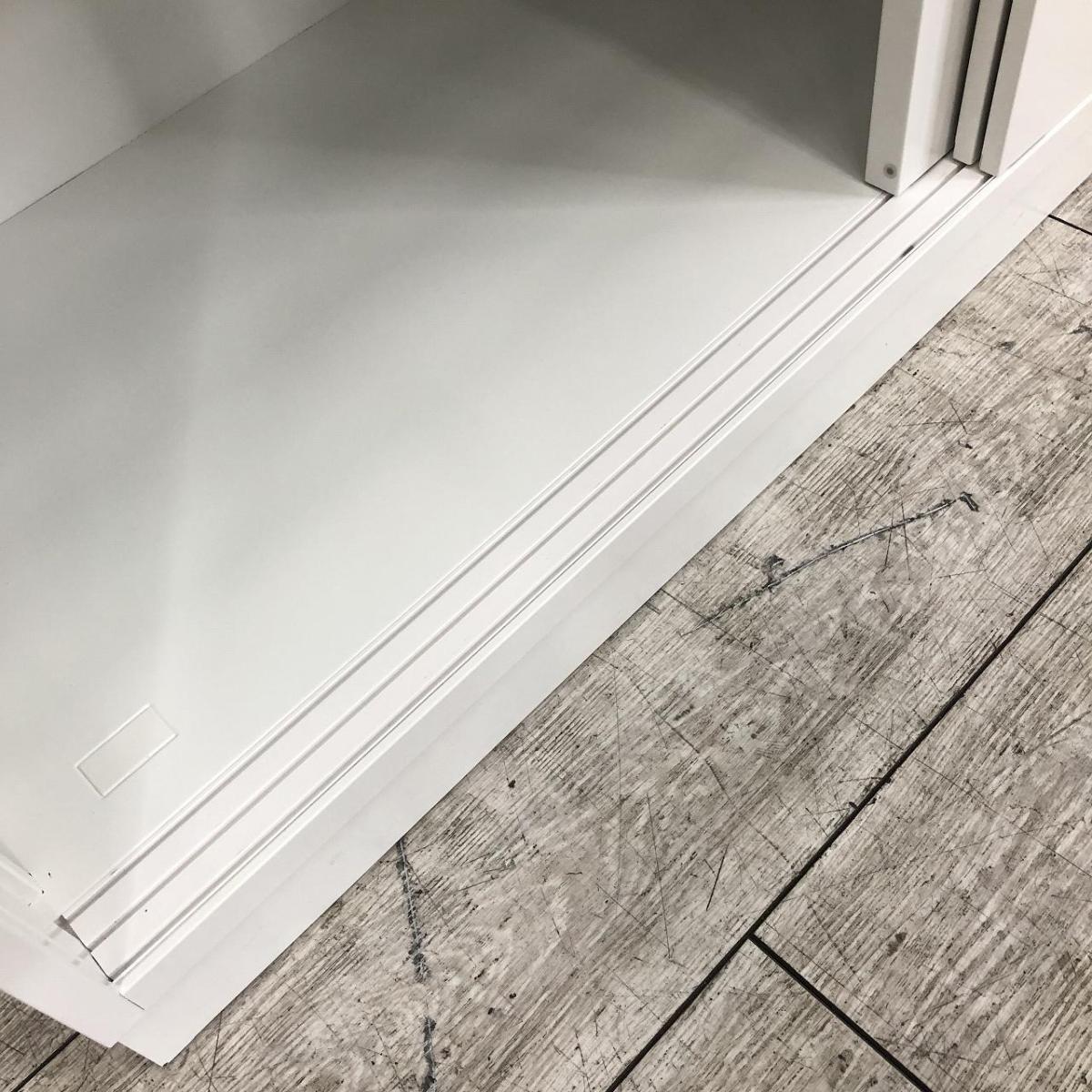 【スライド引き戸だから開閉スペースに困らない!】■コクヨ(KOKUYO)製 エディア(EDIA)シリーズ 2枚引き違い書庫 ローキャビネット シリンダー錠 天板付き ベース付き ホワイト シリンダー錠 収納 中古家具 格安 福岡 オフィス家具 九州最大級《オフィスバスターズ福岡博多店は、福岡を拠点として、日本全国へ中古オフィス用品・オフィス家具を提供しております》