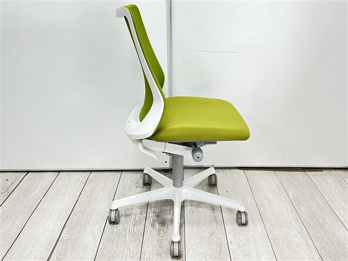 【腰まわりをしっかりホールド!長時間作業も快適フィット!】■オカムラ(okamura)製 フルーエントチェア ハイバック肘無し ■背面メッシュ ■グリーン×ブラックフレーム【T10】