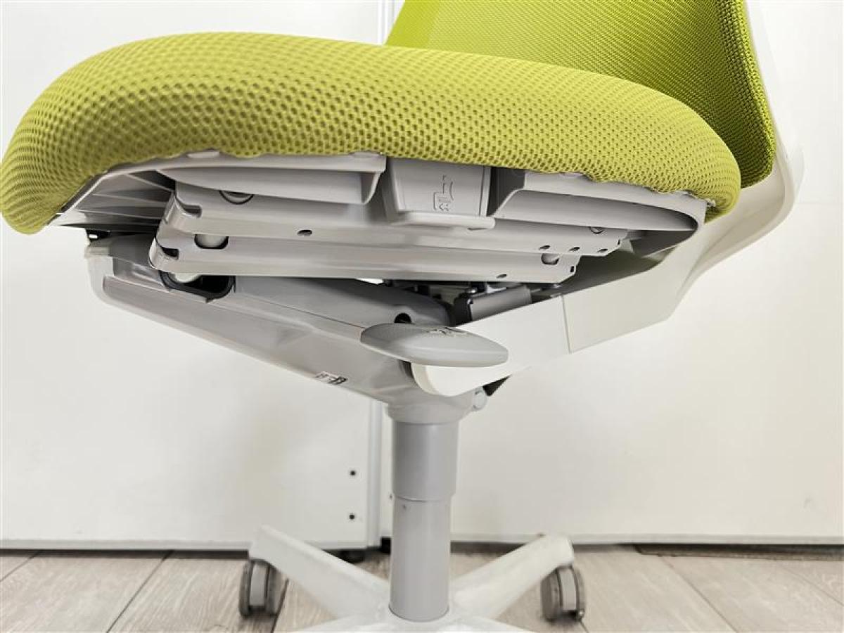 【腰まわりをしっかりホールド!長時間作業も快適フィット!】■オカムラ(okamura)製 フルーエントチェア ハイバック肘無し ■背面メッシュ ■グリーン×ブラックフレーム【T9】