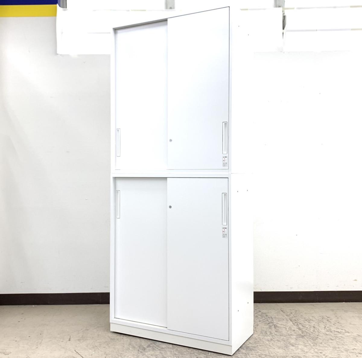 【在庫セール品・7台限定】【T12】■コクヨ(KOKUYO)製 エディアシリーズ(EDIA) 上下引き違い書庫セット ハイキャビネット H2150㎜ ■2枚扉 ■シリンダー錠 ■ホワイト【レアな引き違い書庫セットがロット入荷! 手狭オフィスで大活躍!導線を確保できる上下引き違い書庫セット!】