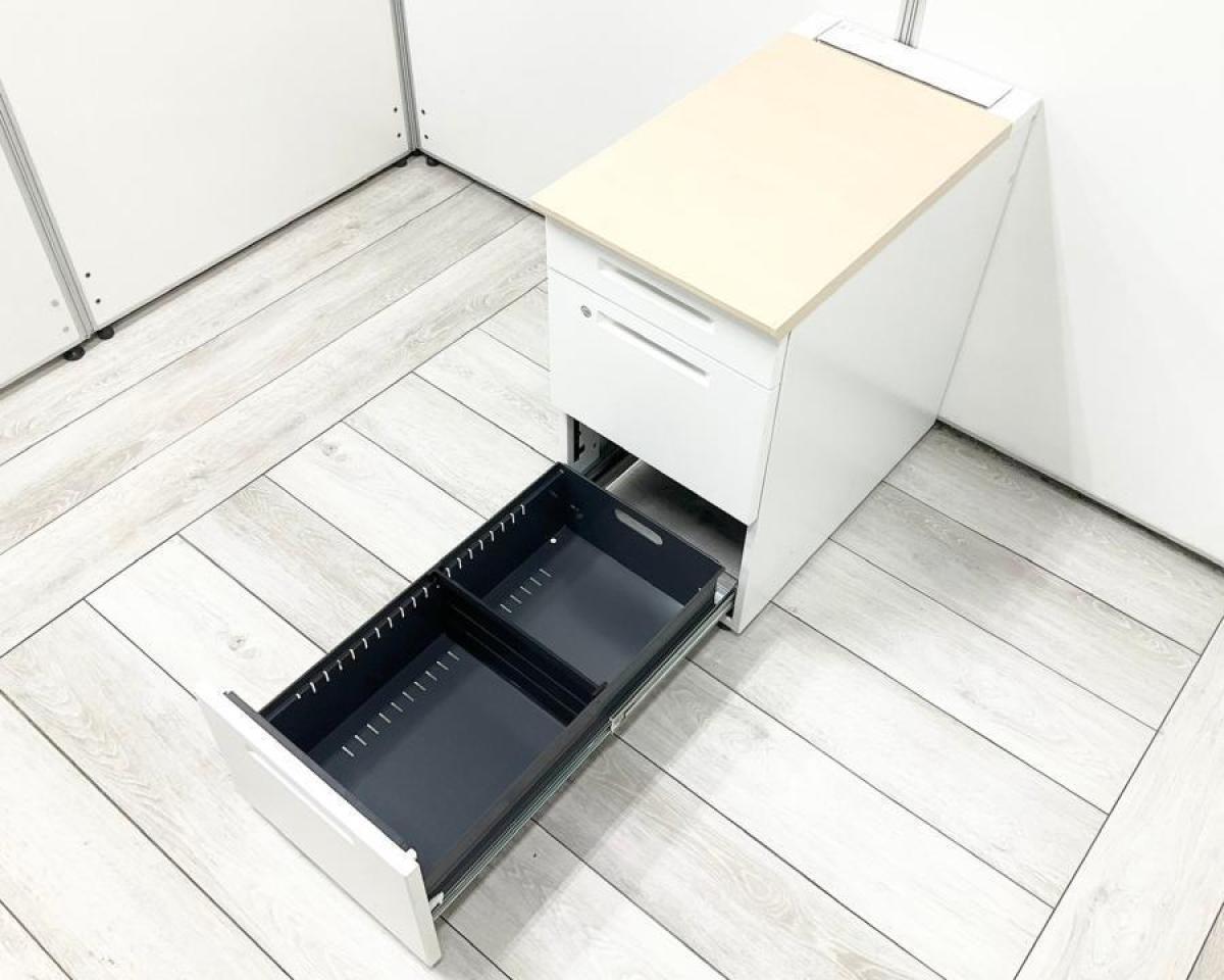 【在庫セール品・8台限定】■コクヨ(KOKUYO) iS(アイエス)シリーズ 3段脇机 ■W400×D700×H720㎜ ■ホワイト/天板:木目ナチュラル ■シリンダー錠【収納と作業スペースを同時に確保!フリアドデスクや平机のお供に!】