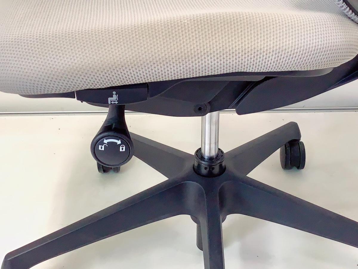 - 座面右下のダイヤル操作で、リクライニングの強弱調整が行えます。これまでのダイヤル式よりも、少ない回転数で、最弱?最強の調整が可能です。