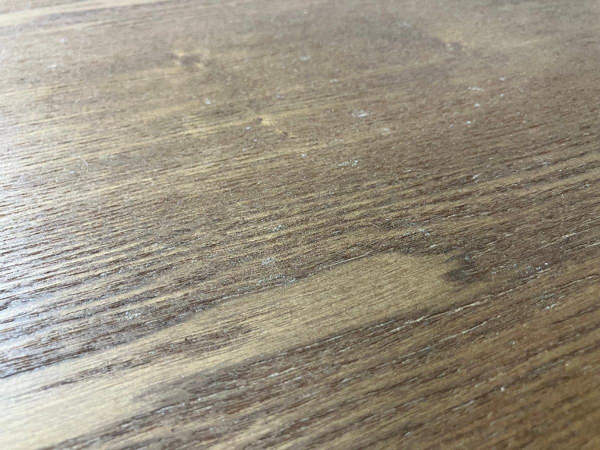 - あり黄ばみ・変色が広い範囲にうっすらある、または濃い黄ばみ・変色が一部ある。(例、天板、幕板、棚板、サイド部分、脚部等にある。)