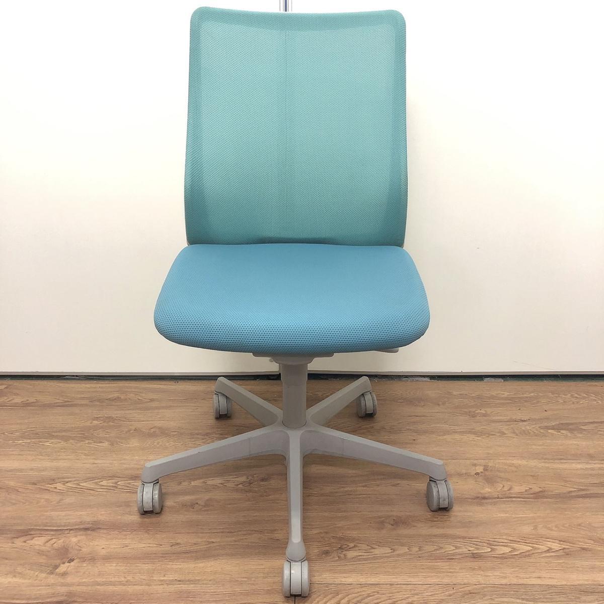 【腰まわりをしっかりホールド!長時間作業も快適フィット!】■オカムラ(okamura)製 フルーエントチェア(Fluent) ローバック 肘無し ■背面メッシュ ■セージブルー×ホワイトシェル