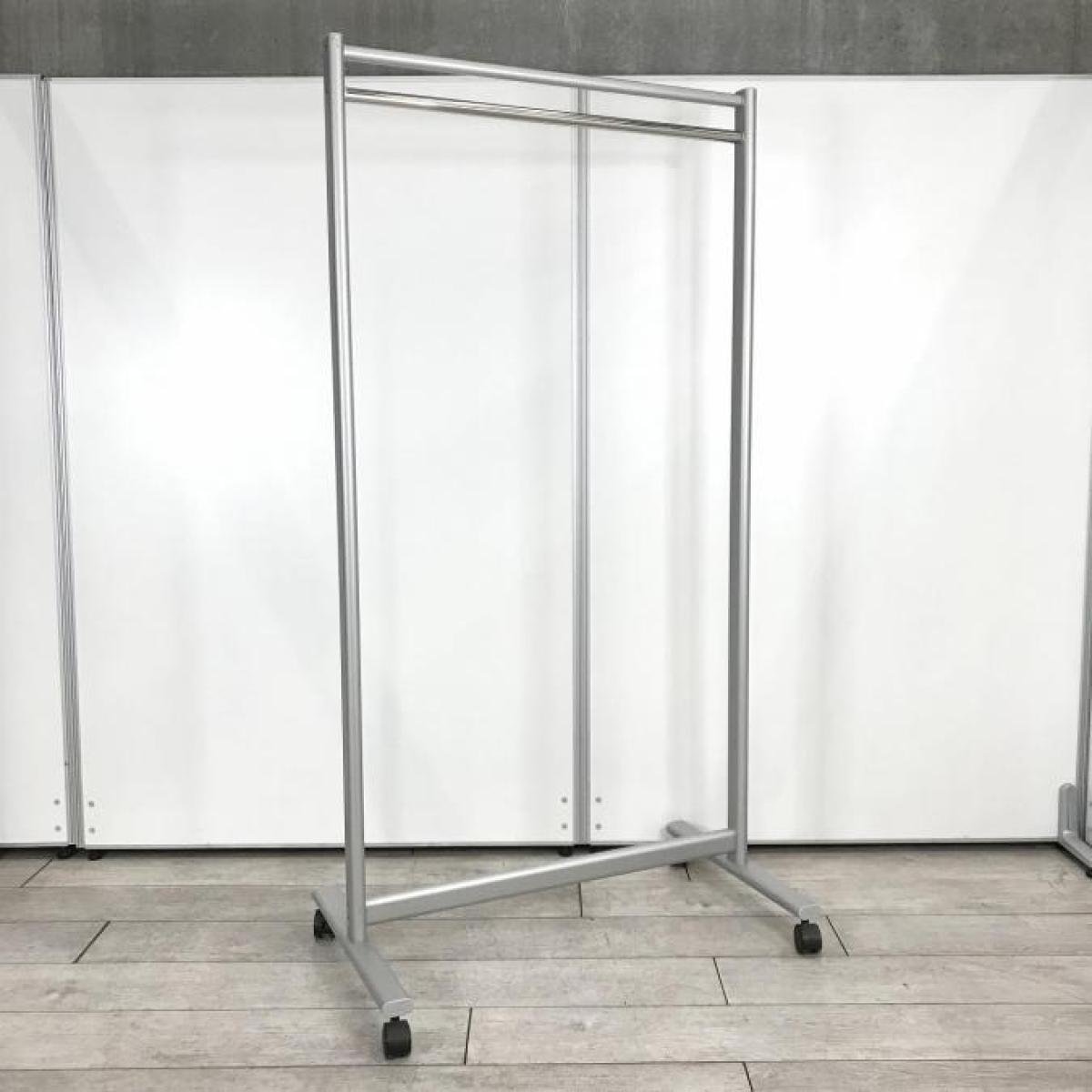 【在庫入替セール】【女性物のロングコートなどもかけることが可能!キャスターも付いており使い勝手は抜群!】■オカムラ製 コートハンガー ■シルバー ■キャスター付- 在庫数