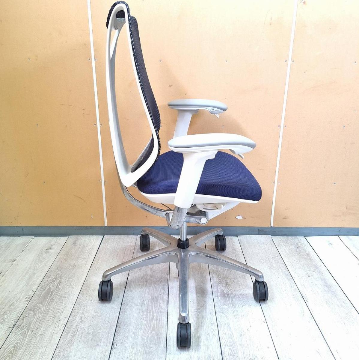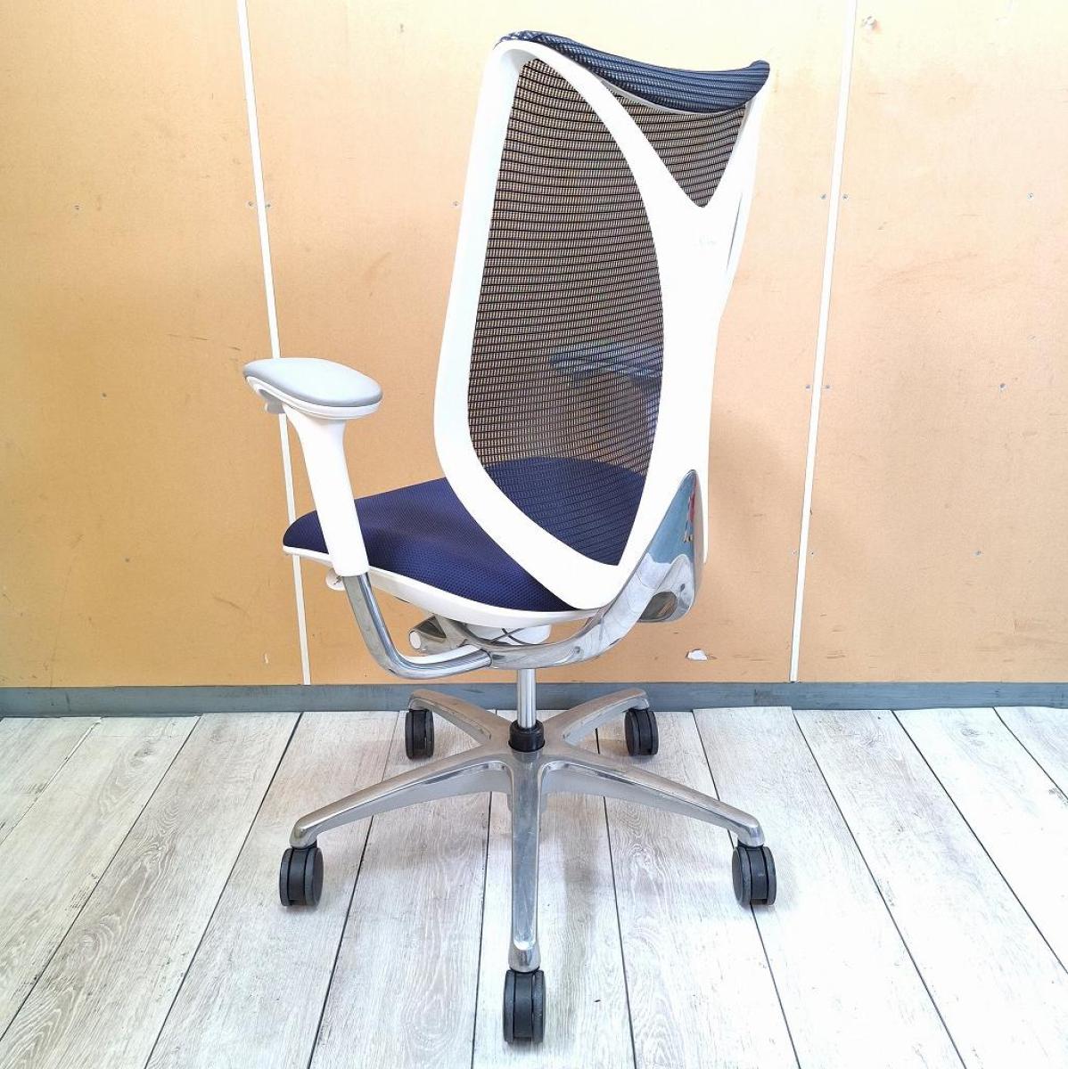 【在庫セール品・4脚限定】【T12】■Okamura/オカムラ ・Sabrina/サブリナ 肘付ハイバック ■座面:ダークブルー 背面:レッド ■デザインアーム(可動肘) ■ホワイトフレーム
