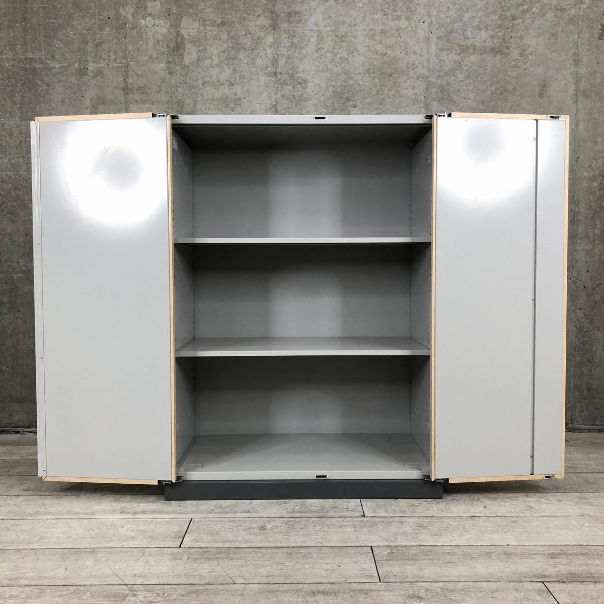 【3台限定】【ナチュラル扉のおしゃれな両開き書庫が入荷!】■ウチダ(UCHIDA)製 両開き書庫 ローキャビネット ■シリンダー錠 ■正面:ナチュラル/側:グレー 【観音開きタイプで収納物が見やすい!】- 在庫数