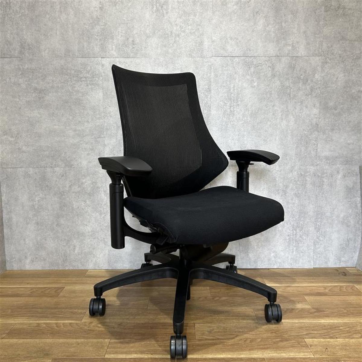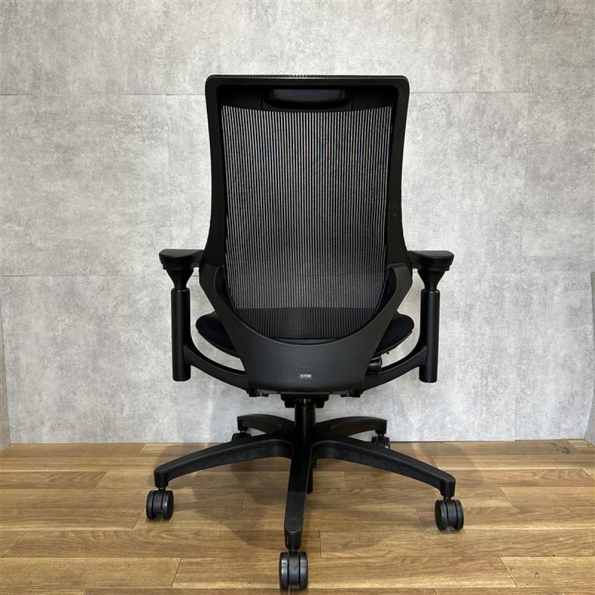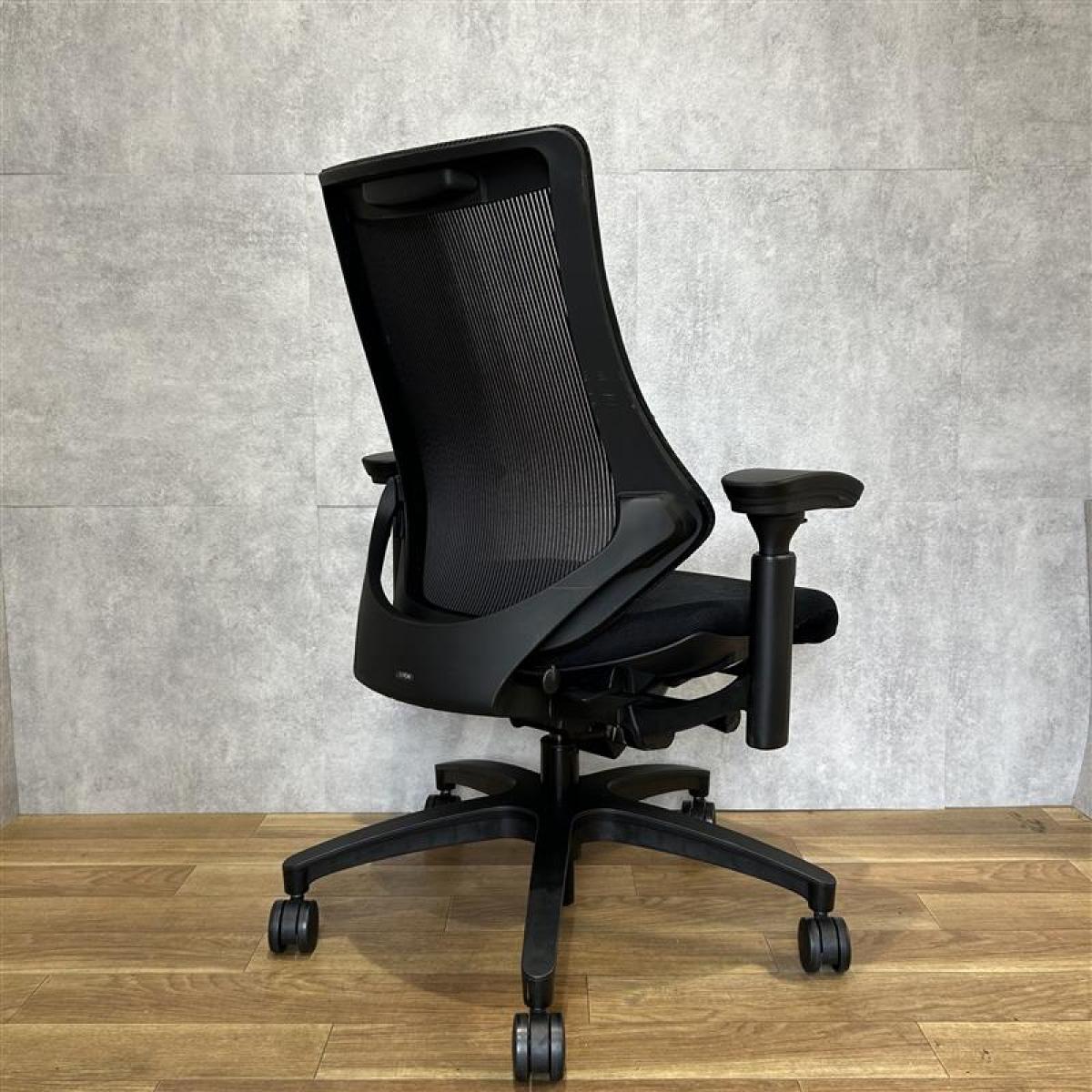 【在庫入替セール品!】【三次元フォルムが身体にしっかりフィット!】■イトーキ エフチェア 可動肘付 ブラック 背裏ストライプメッシュ ※座面に擦れ・ホツレがあるためお安く! 【ITOKI fチェア】