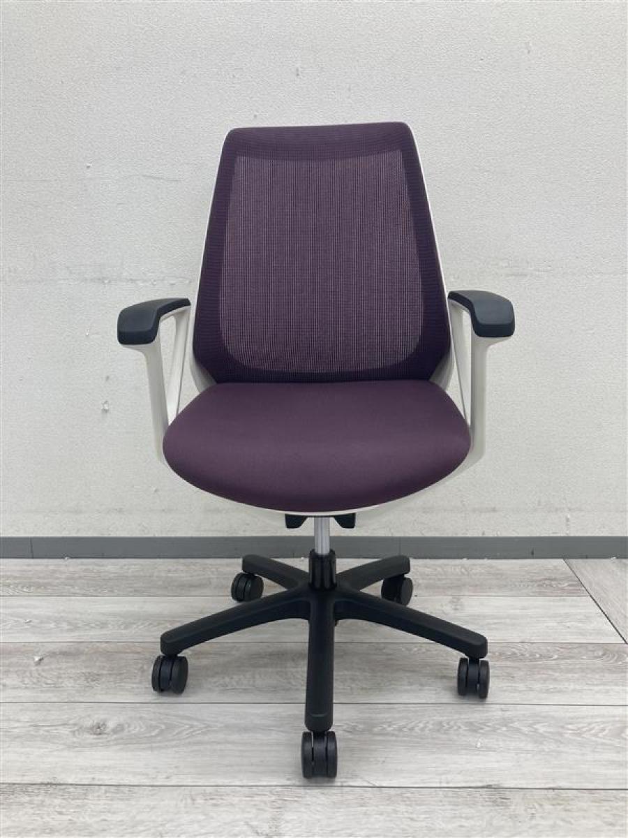 【コンパクトで使いやすい!】イトーキ ノナチェア パープル ホワイトフレーム 肘付きOAチェア 〈岐阜・愛知・三重・静岡・福井〉- 岐阜店