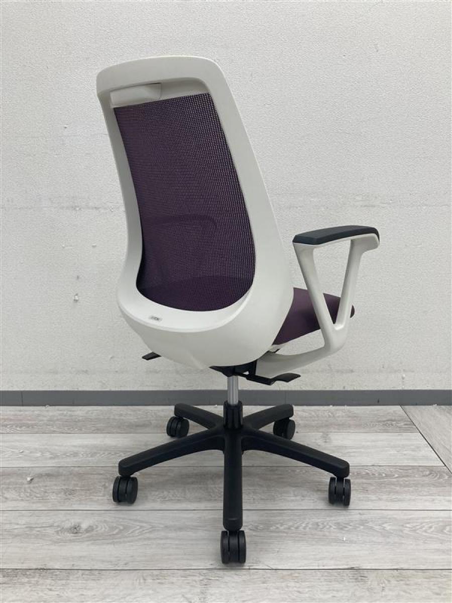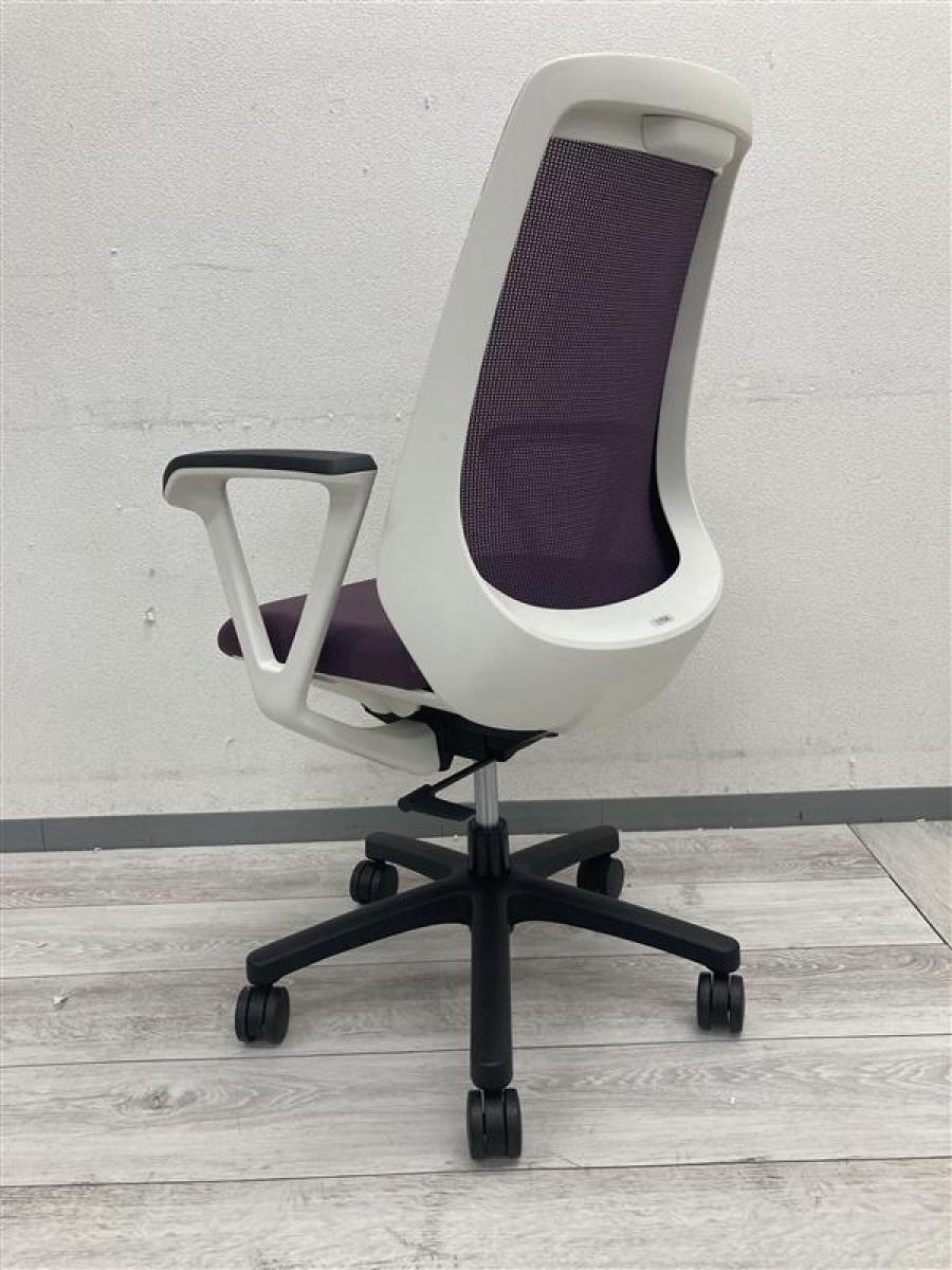 【理想的な作業姿勢をキープ!通気性も良い背もたれメッシュ!】■イトーキ(ITOKI) ノナ(nona)チェア ハイバック 肘付き ■サークル肘 ■背面メッシュ ■プラムパープル × ホワイトシェル×ブラック脚