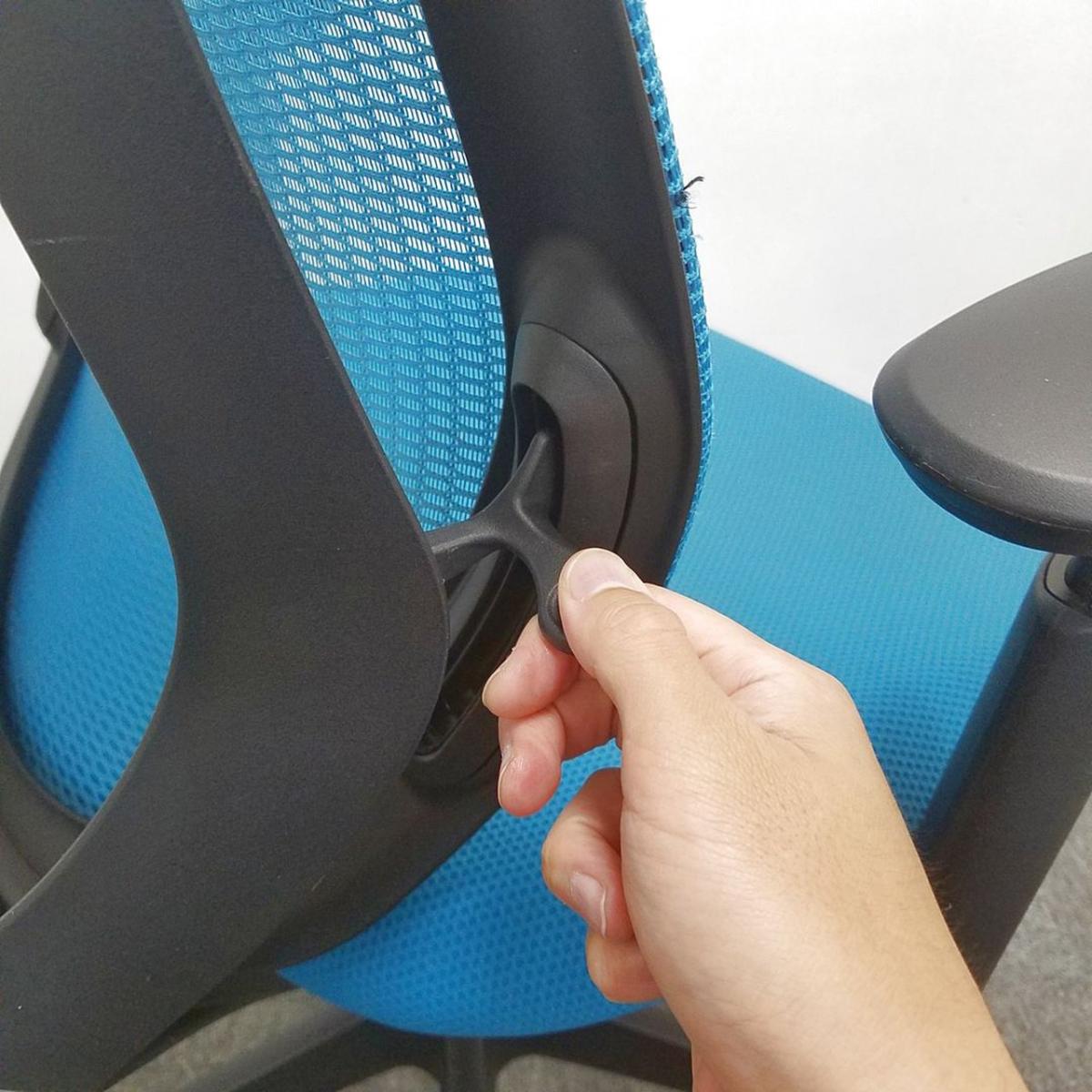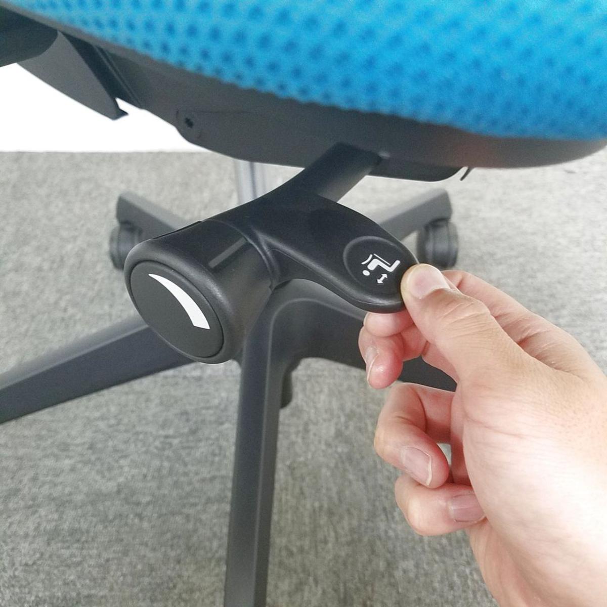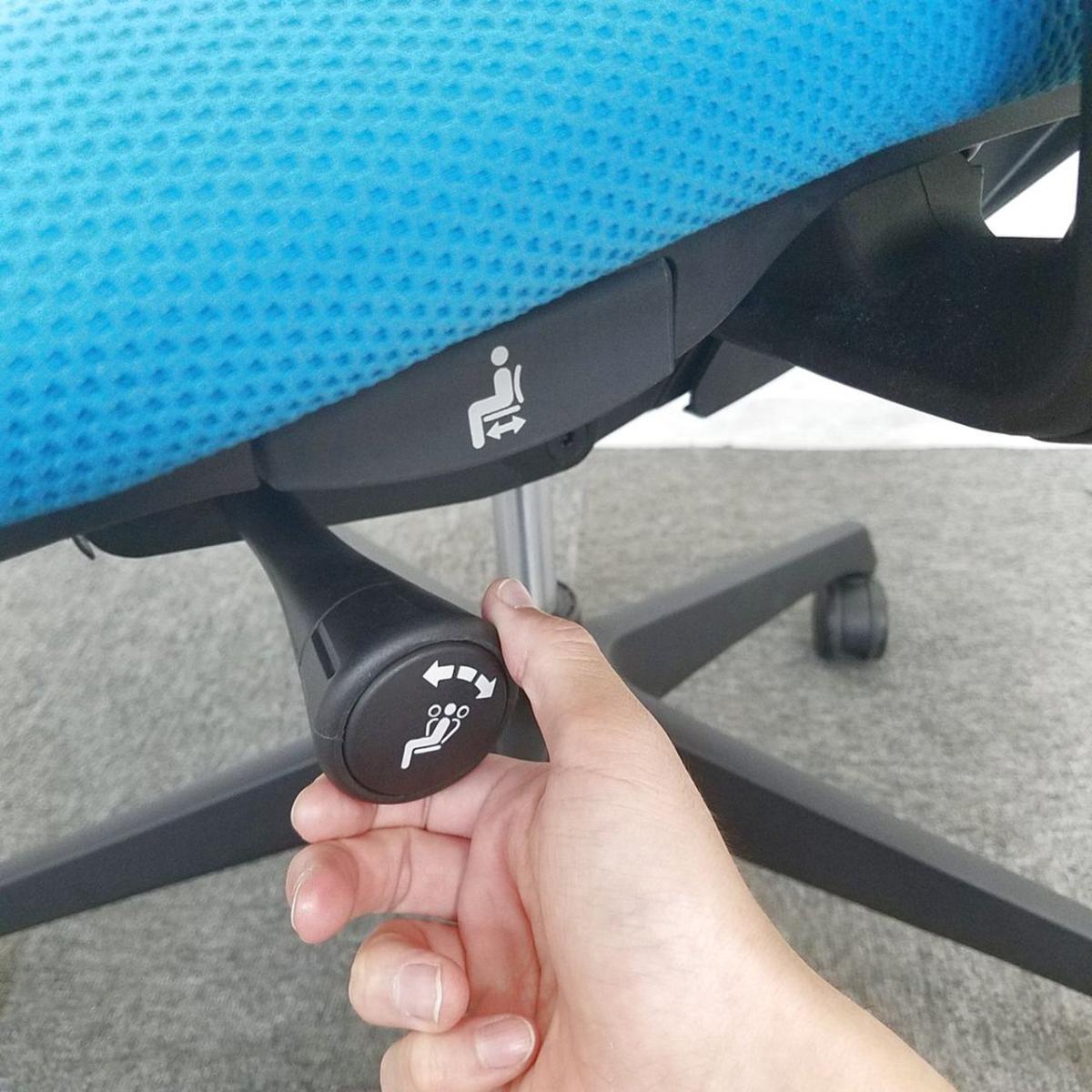 - 座面右下のダイヤル操作で、リクライニングの強弱調整が行えます。これまでのダイヤル式よりも、少ない回転数で、最弱?最強の調整が可能です。