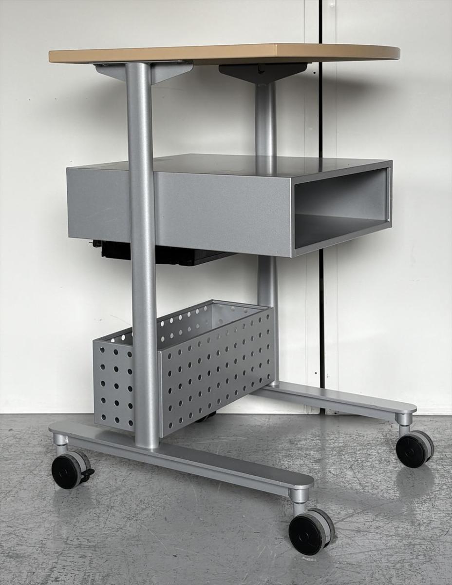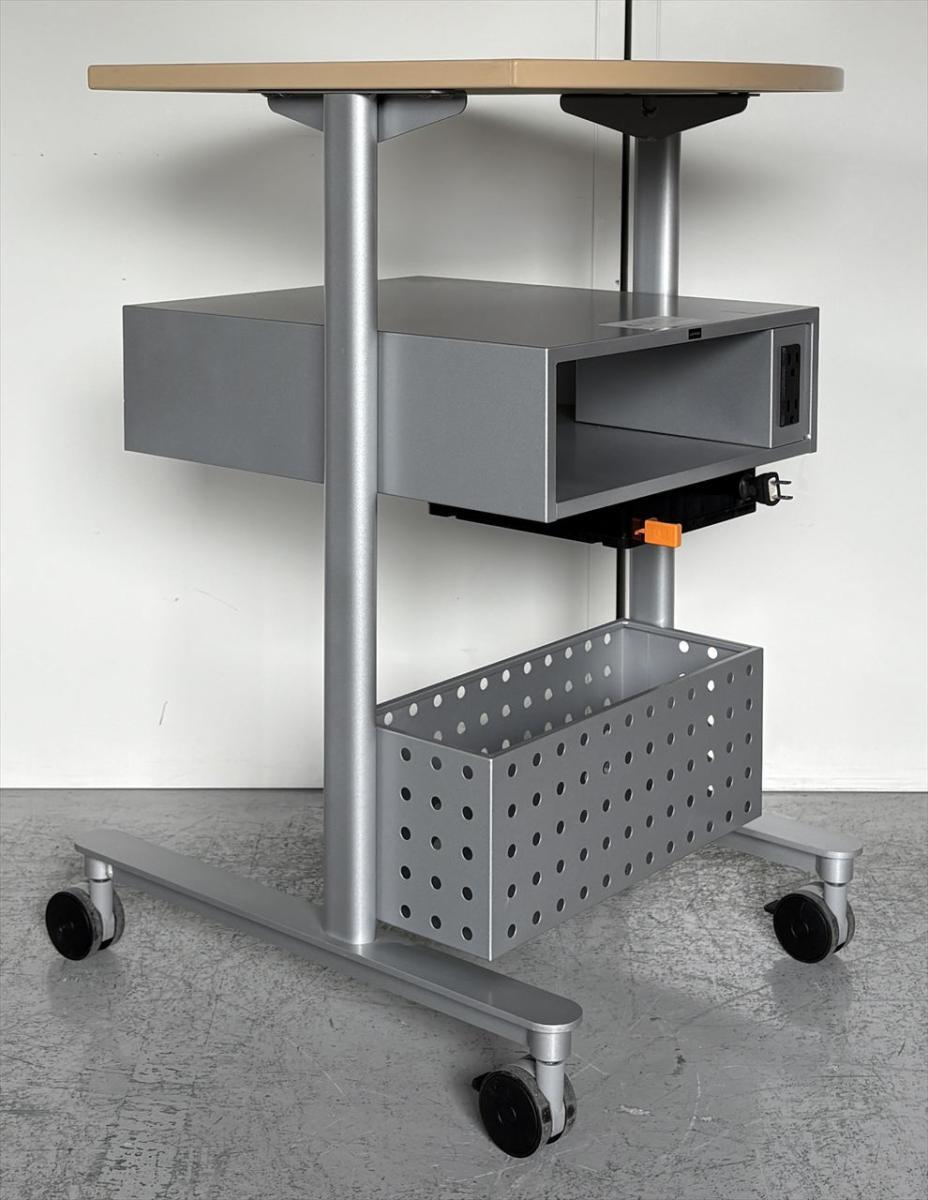 【在庫入替セール】【スタイリッシュな電話台!プロジェクターや消毒液置き場など使い道は色々です!】■ウチダ(UCHIDA) 電話・プリント台 ■木目ナチュラル天板 本体シルバー ■キャスター付き【K8】- 在庫数
