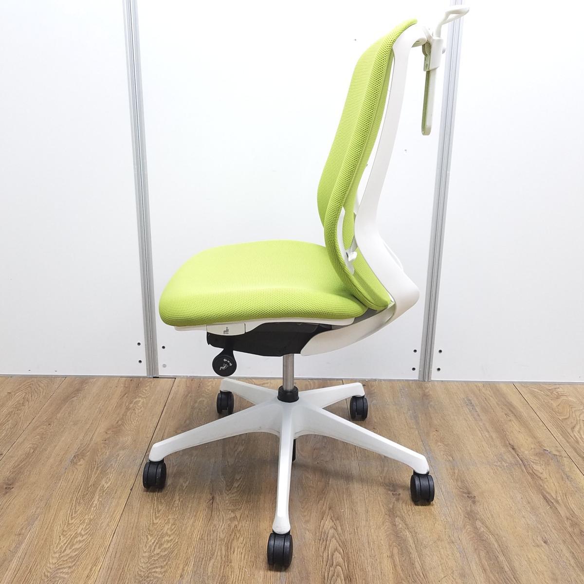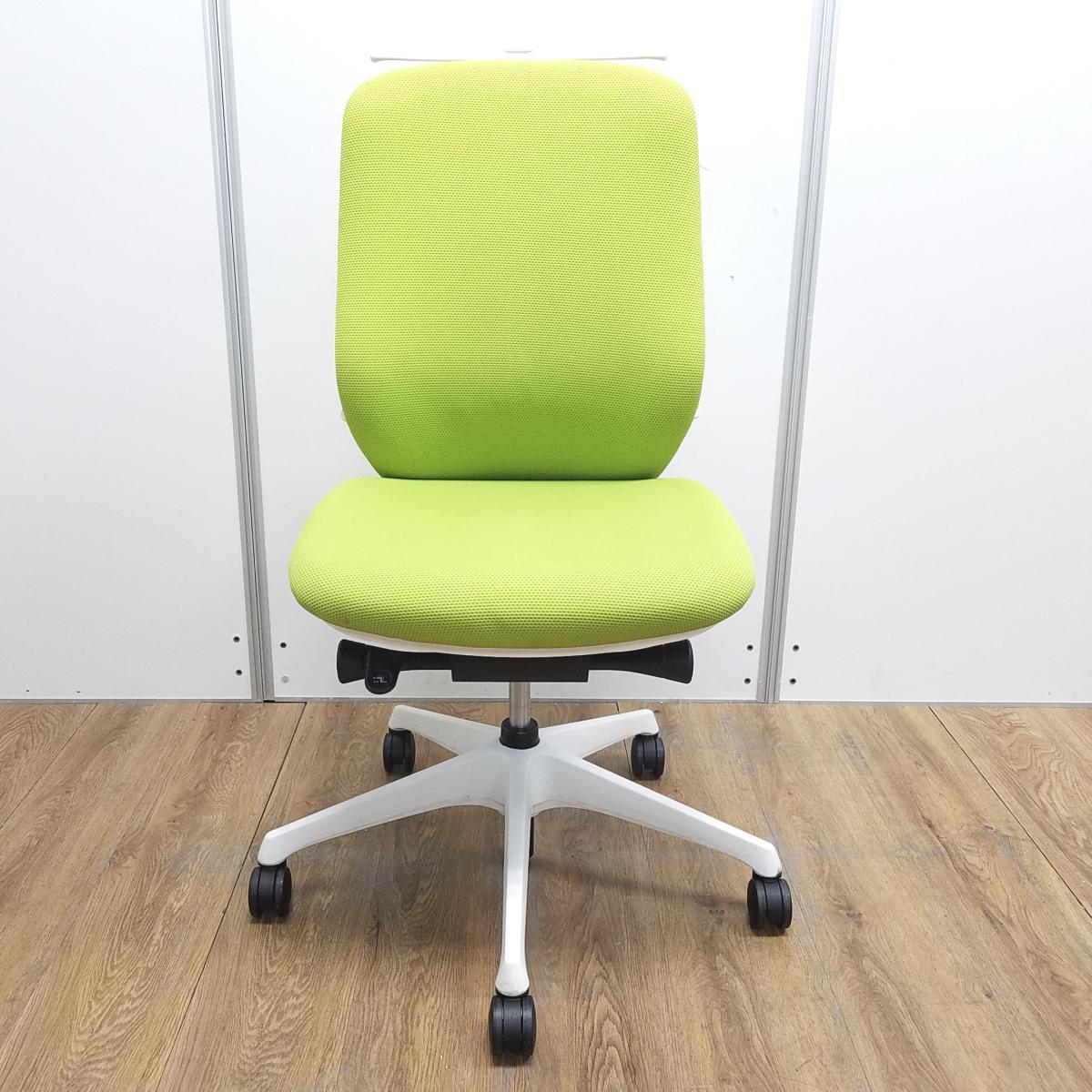 オカムラ製 シルフィーシリーズ ライムグリーン ホワイトフレーム 背面クッション コートハンガー付き 快適な座り心地を実現! 人気シリーズの背面クッションモデル! 肘無しハイバックチェア!!