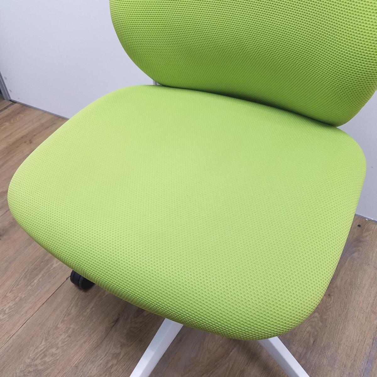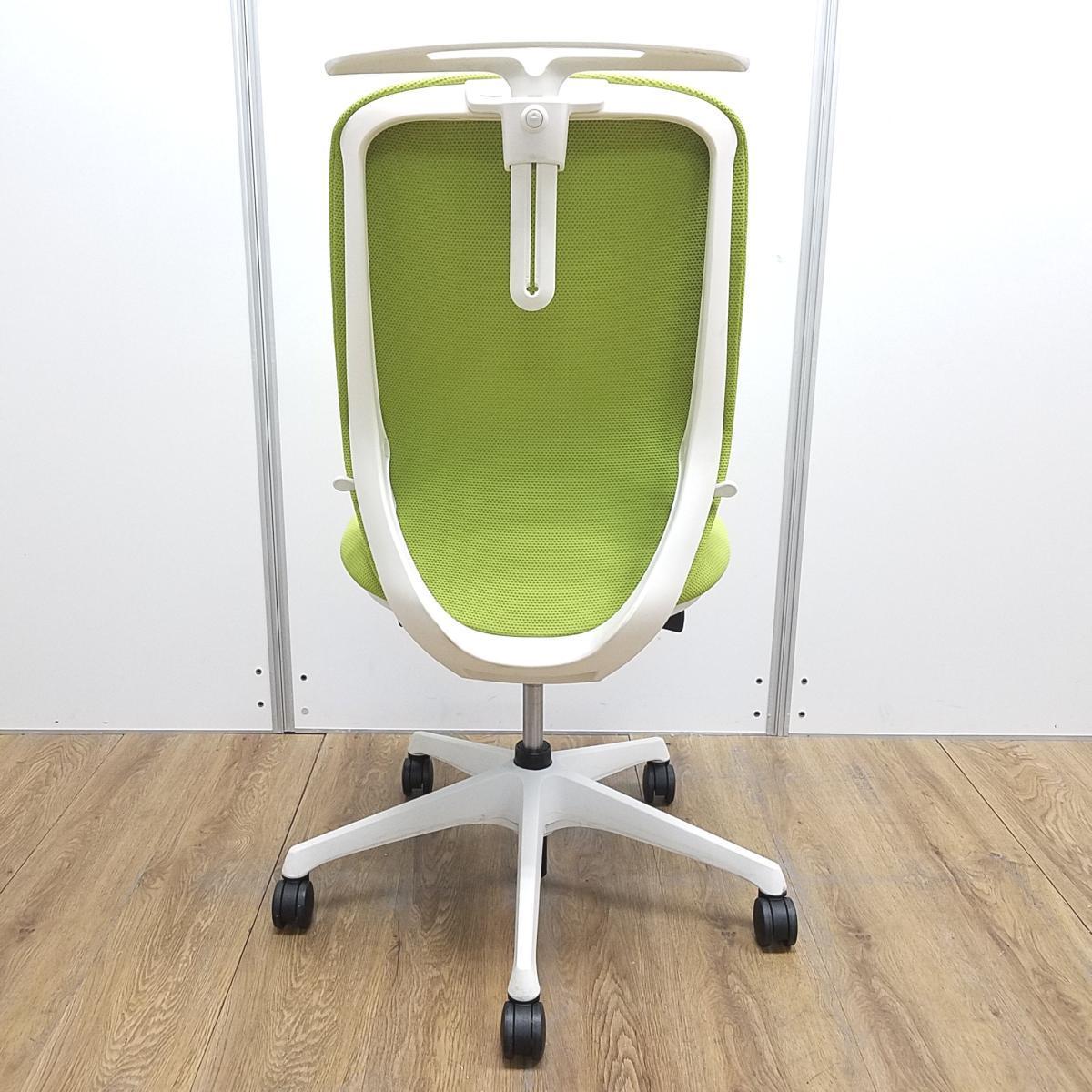 オカムラ製 シルフィーシリーズ ライムグリーン ホワイトフレーム 背面クッション コートハンガー付き 快適な座り心地を実現! 人気シリーズの背面クッションモデル! 肘無しハイバックチェア!!