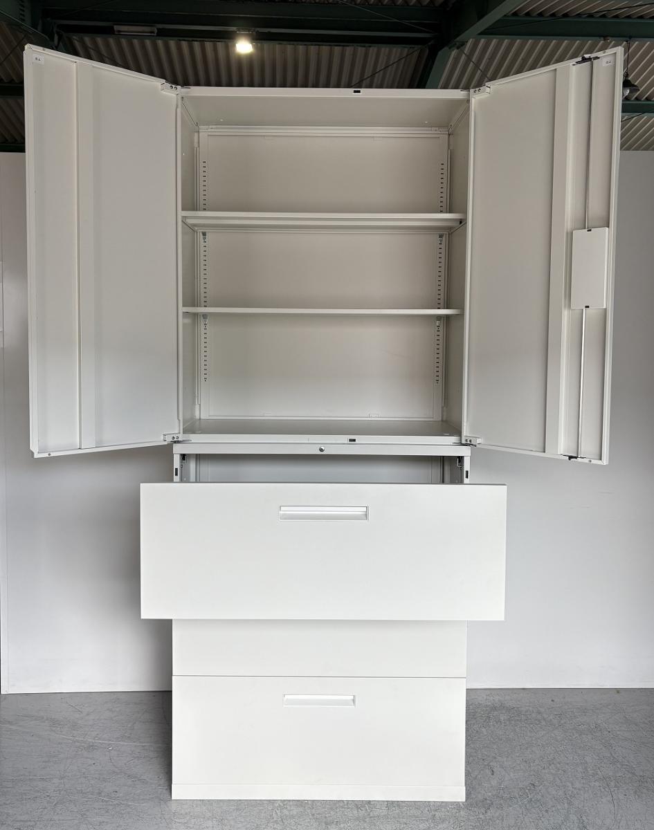 【在庫入替セール】【大容量収納で人気の書庫セット!】■アイリスチトセ(IRIS CHITOSE) 両開き+3段ラテラル 書庫セット ハイキャビネット ■ホワイト ■シリンダー錠【K8】- 神戸・三宮店