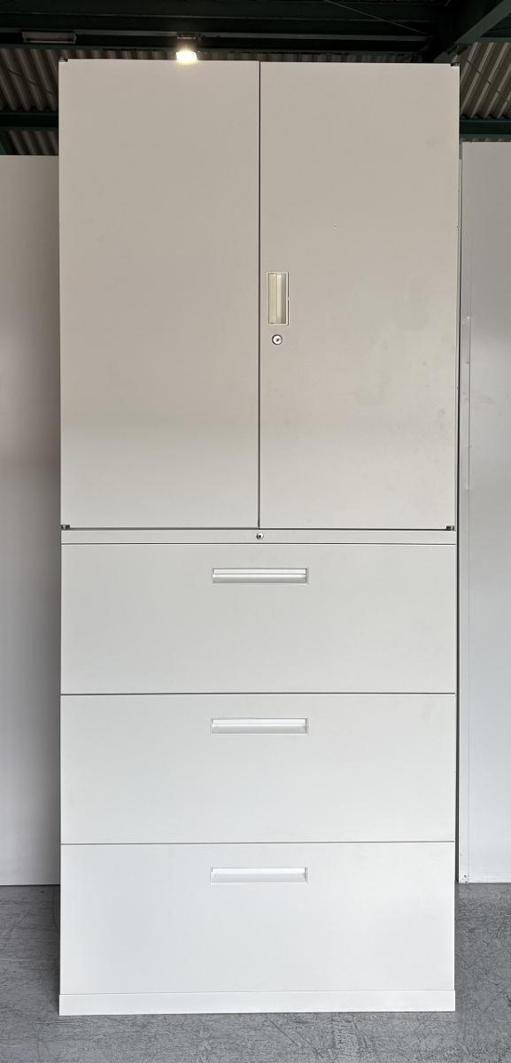 【在庫入替セール】【大容量収納で人気の書庫セット!】■アイリスチトセ(IRIS CHITOSE) 両開き+3段ラテラル 書庫セット ハイキャビネット ■ホワイト ■シリンダー錠【K8】- 在庫数