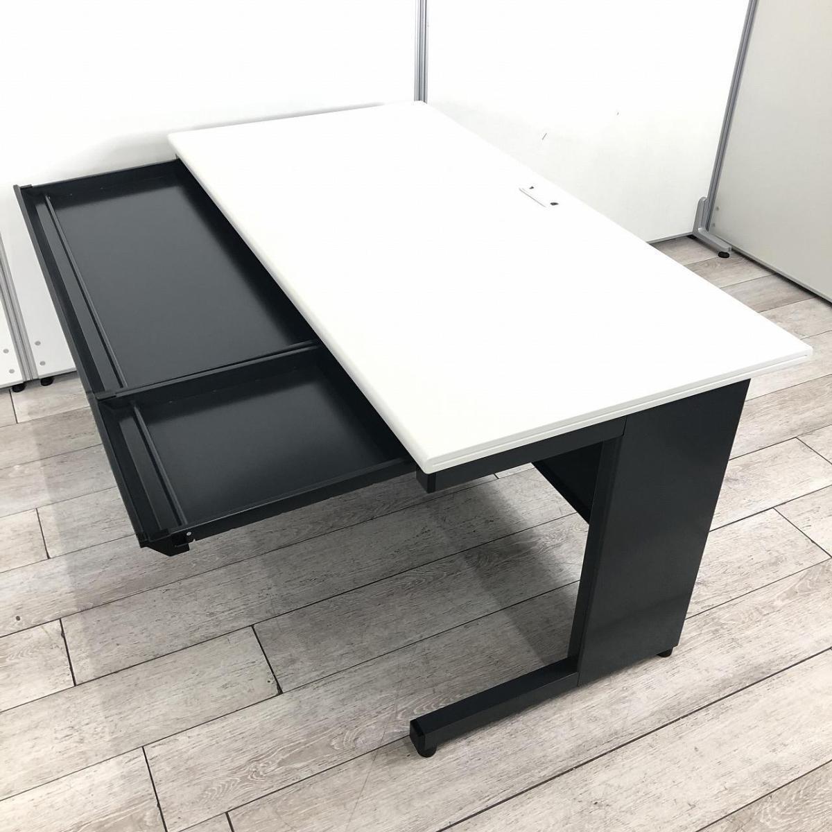 【在庫入替セール】【ホワイト天板とブラック脚のコントラストがオシャレ!広々使える幅1400㎜!】■プラス(PLUS) フラットラインシリーズ 引き出し付 W1400×D700㎜ ■配線口 ■ホワイト×ブラック【K8】在庫がある店舗一覧