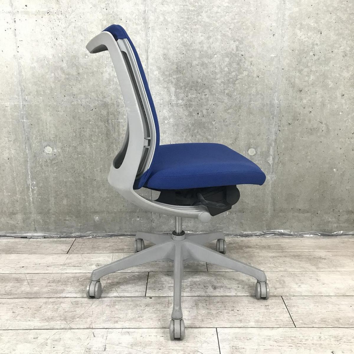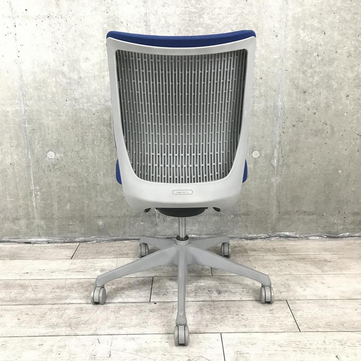 【T11】【T9】【座面スポンジ劣化】オカムラ製 ヴィスコンテシリーズ ミディアムブルー クッションタイプ 高いデザイン性と快適なクッション性が人気のOAチェア! 肘無しハイバックチェア!!