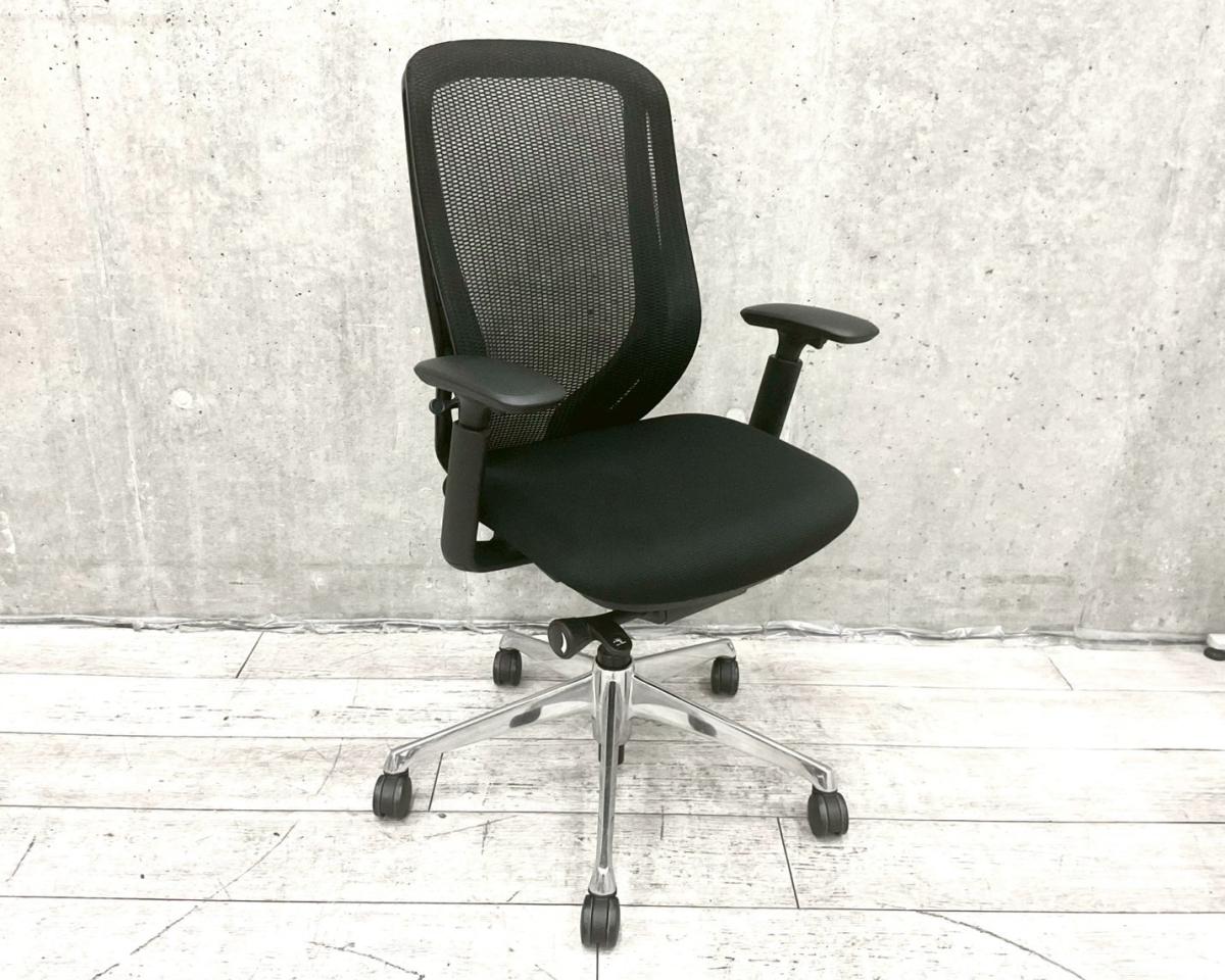 【限定1脚】【三次元曲面が身体にフィット!前傾チルト機能付き大人気メッシュチェア!】■オカムラ(okamura)製 シルフィーチェア(Sylphy) 肘付きハイバック ■背面メッシュ ■可動肘 ■ブラック×ブラックシェル ■ランバーサポート付き