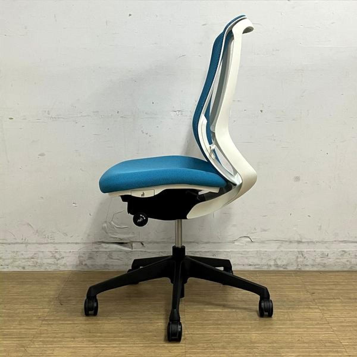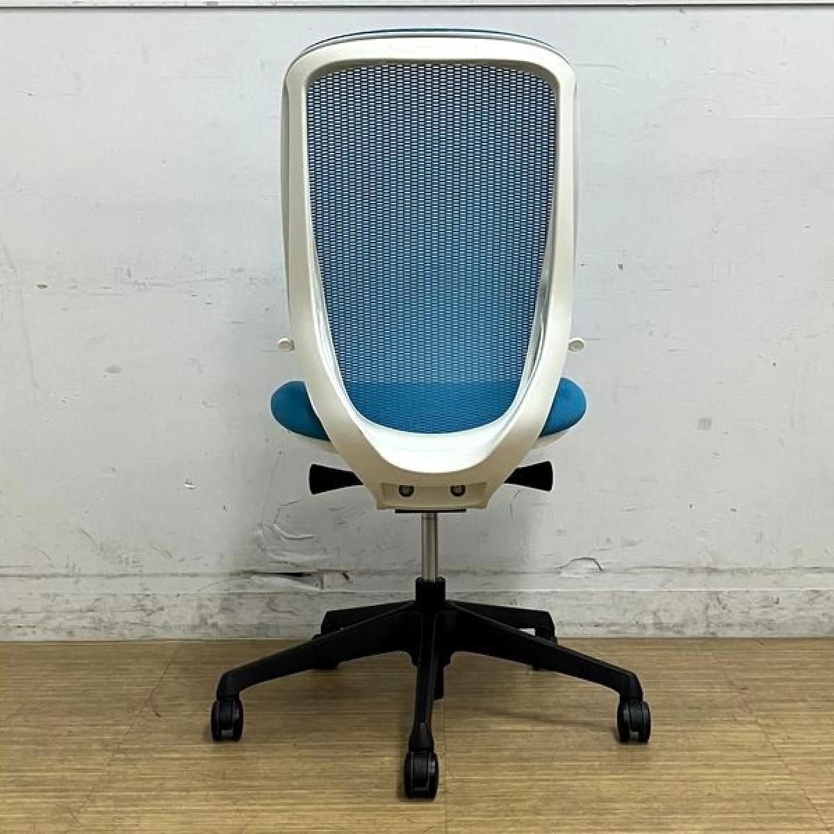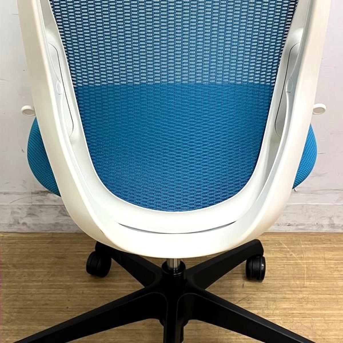 オカムラ シルフィ 肘無しハイバック 背:メッシュ ブルーグリーン×ホワイトフレーム×ブラック脚 前傾機能がウリの高機能チェア- 名古屋千種店