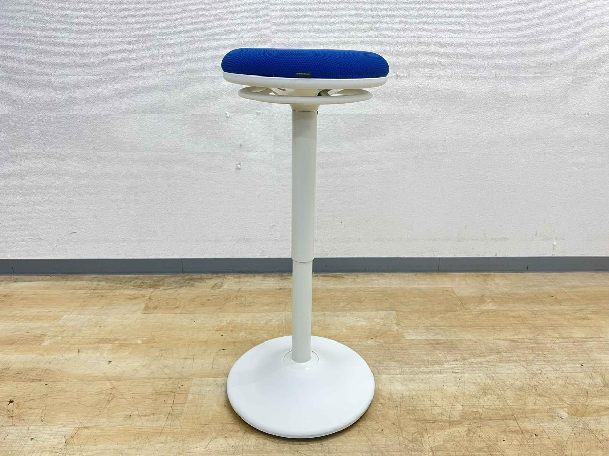 【「座る」と「立つ」のいいとこ取り!】■オカムラ(okamura) ピルエット(pirouetto) カウンターチェア スツール ■ブルー シェル:ホワイト【高さ調節可能なパーチングスツール!】〈岐阜・愛知・三重・静岡・福井〉- 在庫数