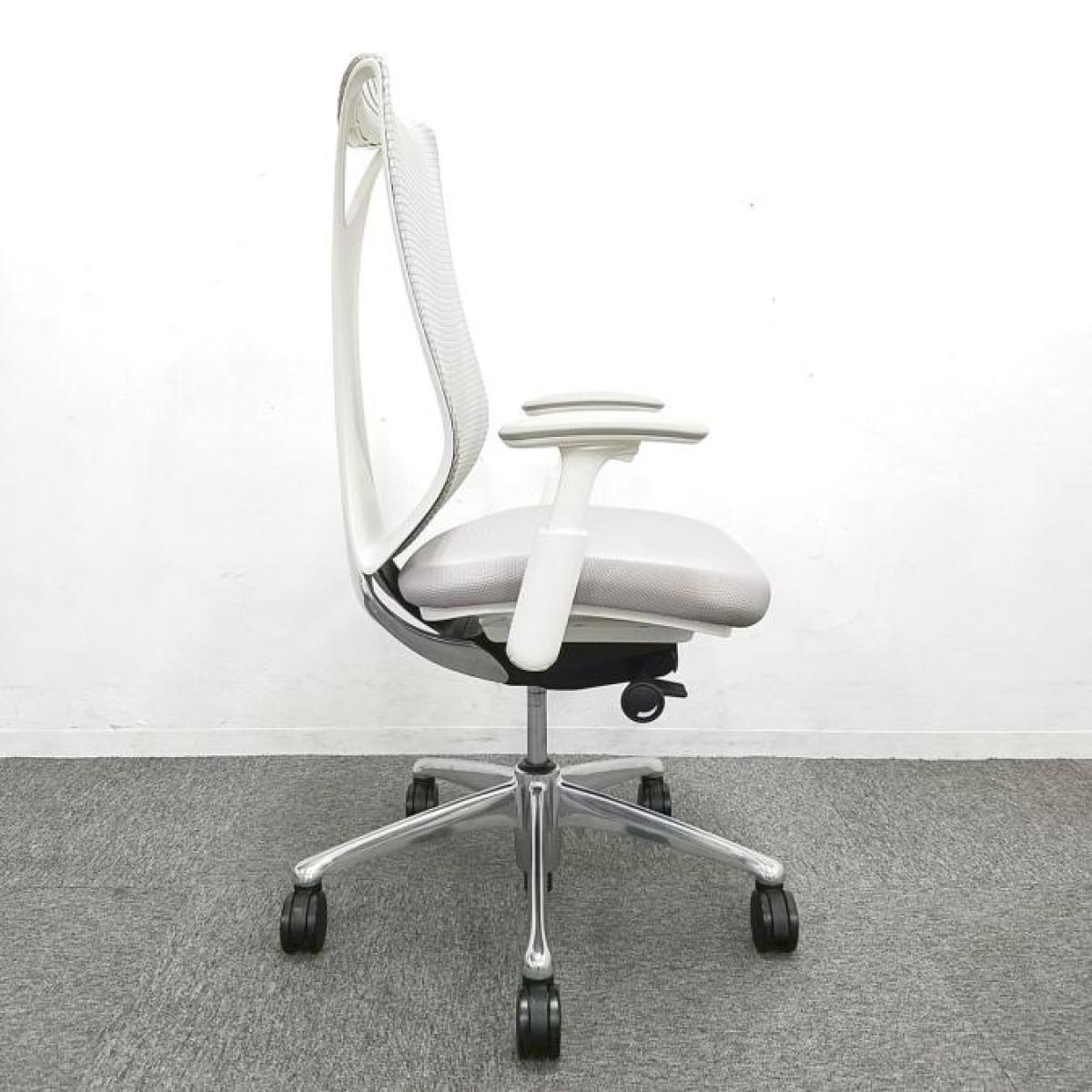 【前傾チルト付!流れるような美しいフォルムの最高級メッシュチェア!】■オカムラ(okamura)製 Sabrina(サブリナ)チェア 肘付ハイバック ■アジャストアーム(可動肘) ■背面メッシュ ■ライトグレー × ホワイトフレーム