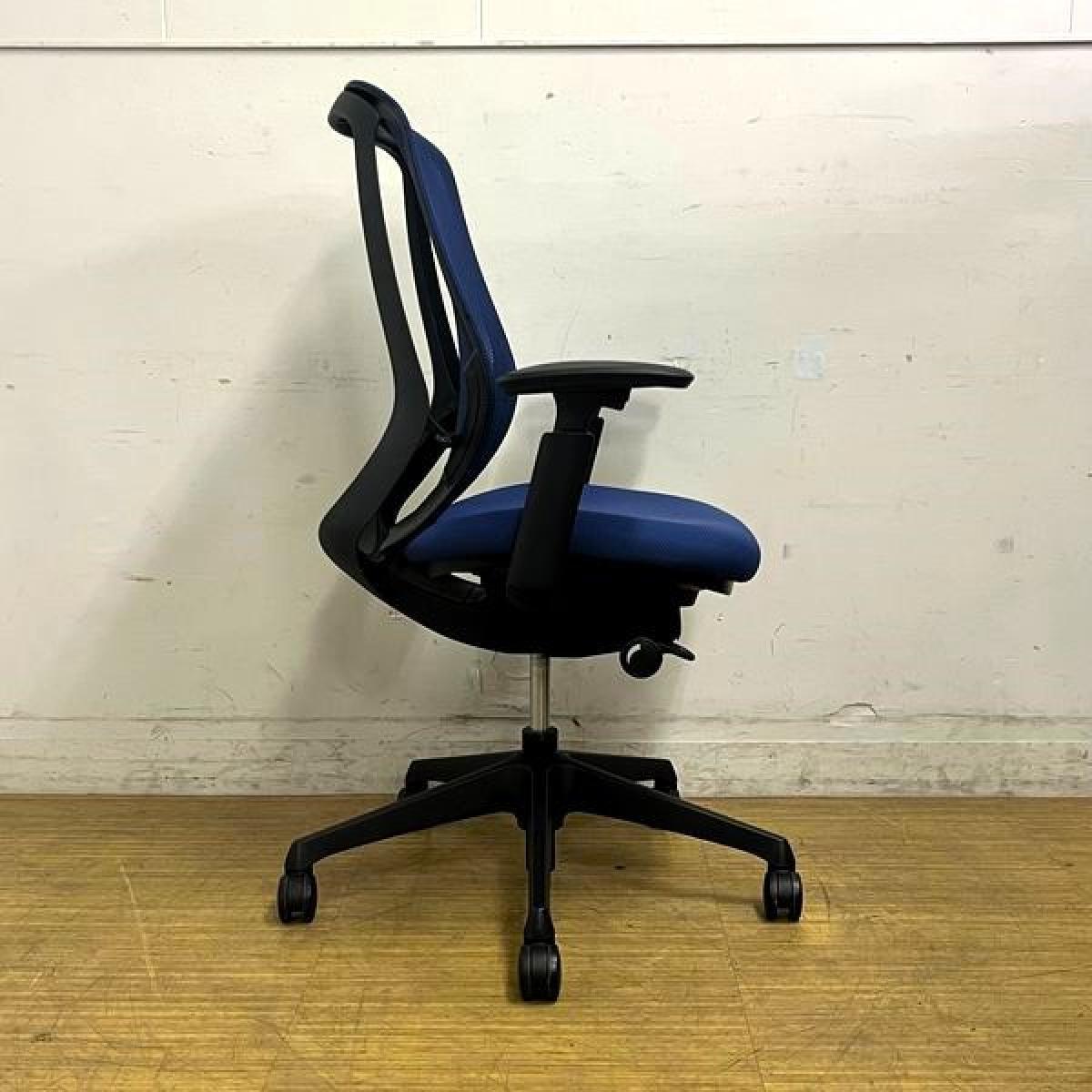 【新品ヘッドレスト交換済み】オカムラ/シルフィー/ブルー/可動肘