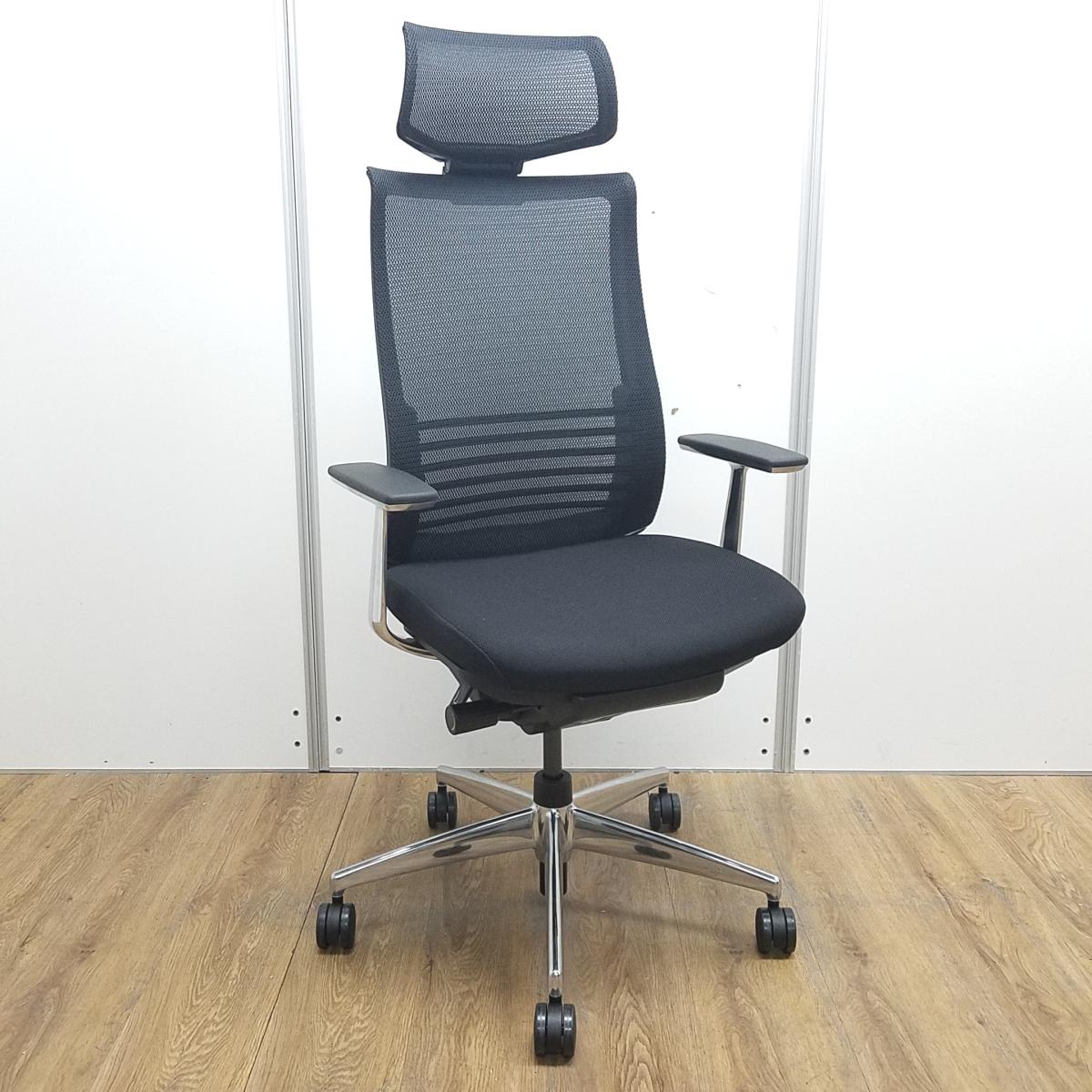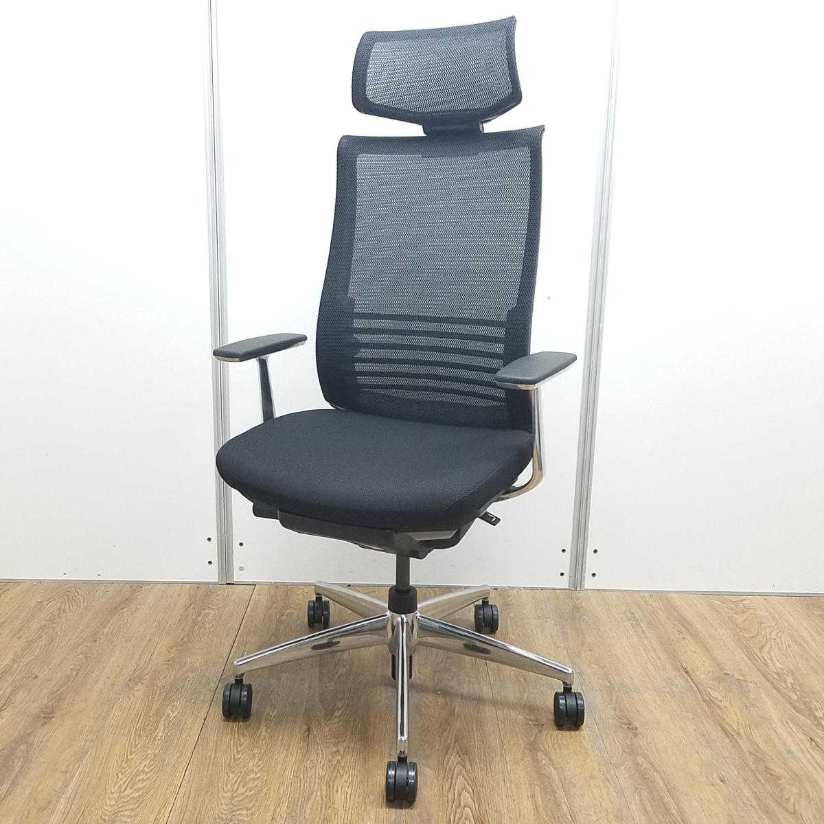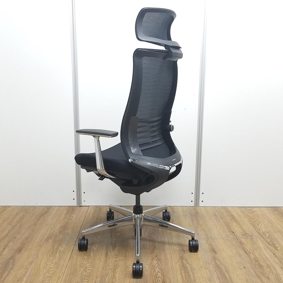【T10】【状態良好】【商品入替のため、残り1脚限[]り】コクヨ製 ベゼル ブラック ブラックフレーム ポリッシュ脚 アルミ肘※固定肘 ランバーサポート ヘッドレスト 前傾姿勢 肘付きハイバックチェア!!- 京都東寺店
