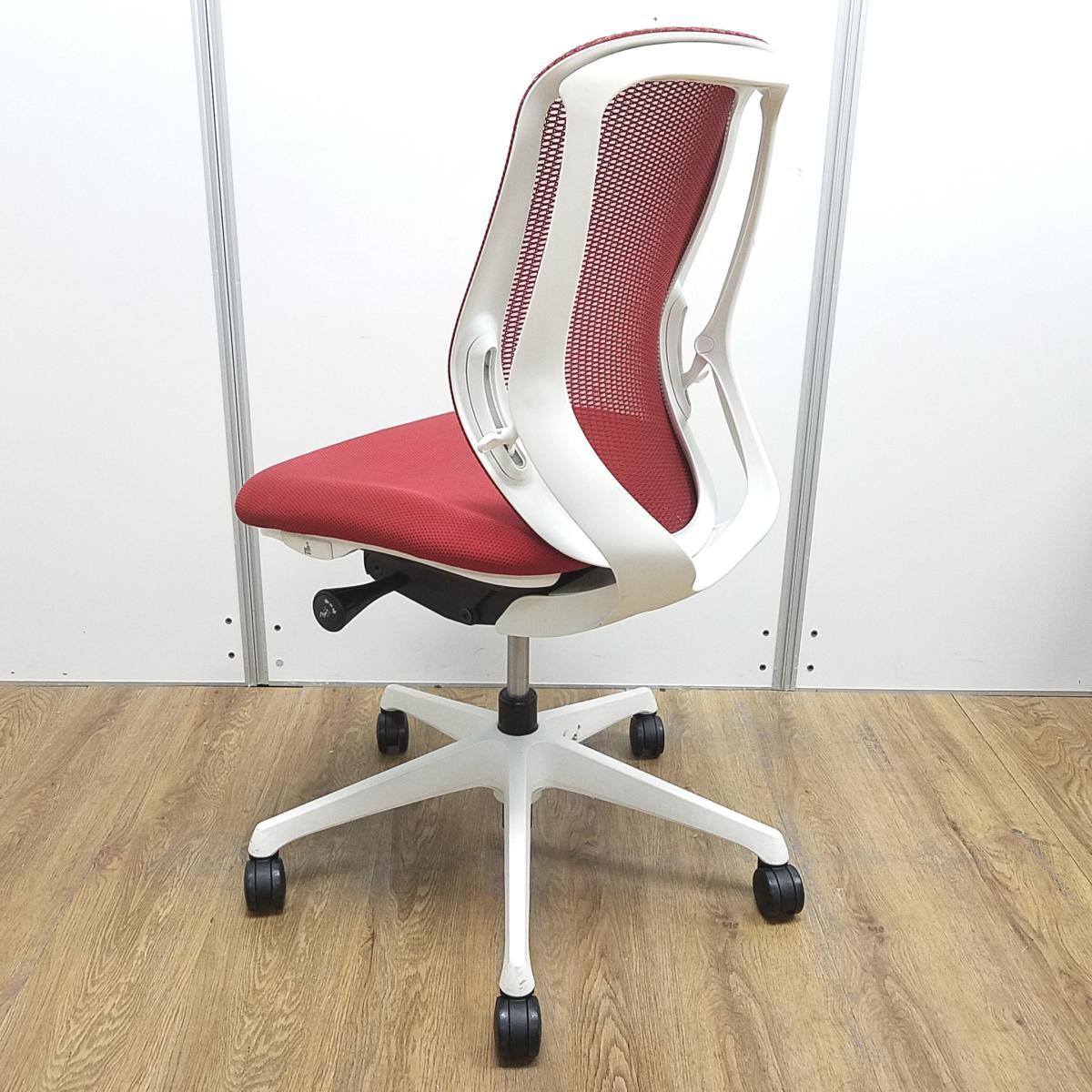 オカムラ製 シルフィー レッド ホワイトフレーム 背面メッシュ 肘無し ローバック 前傾機能チェアの代名詞! 大人気シルフィーチェア! 肘無しローバックチェア!!サーキュラーバリューCO2削減量の算出について