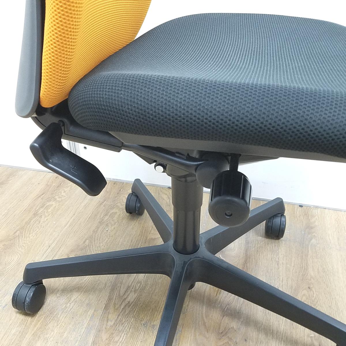 【K10】オカムラ製 スラート オレンジxブラック ブラックフレーム コートハンガー ローバック シンプルなデザインと厚みのあるクッションが大人気! 機能充実のワーキングチェア! 肘無しローバックチェア!!サーキュラーバリューCO2削減量の算出について